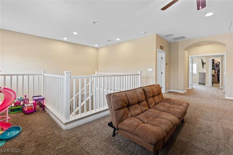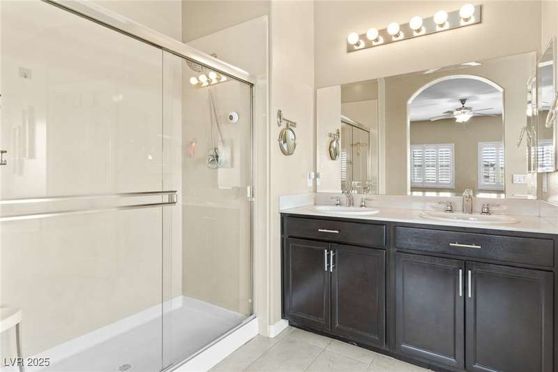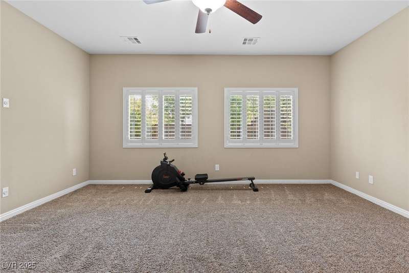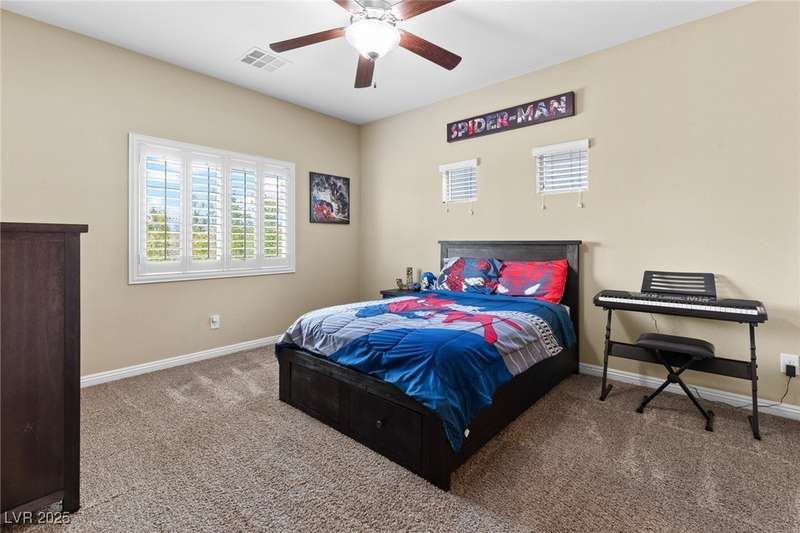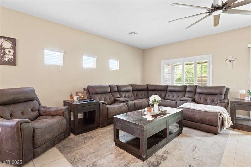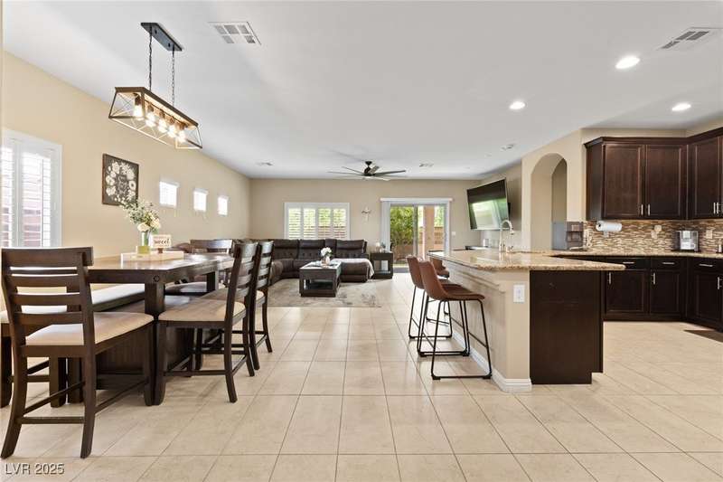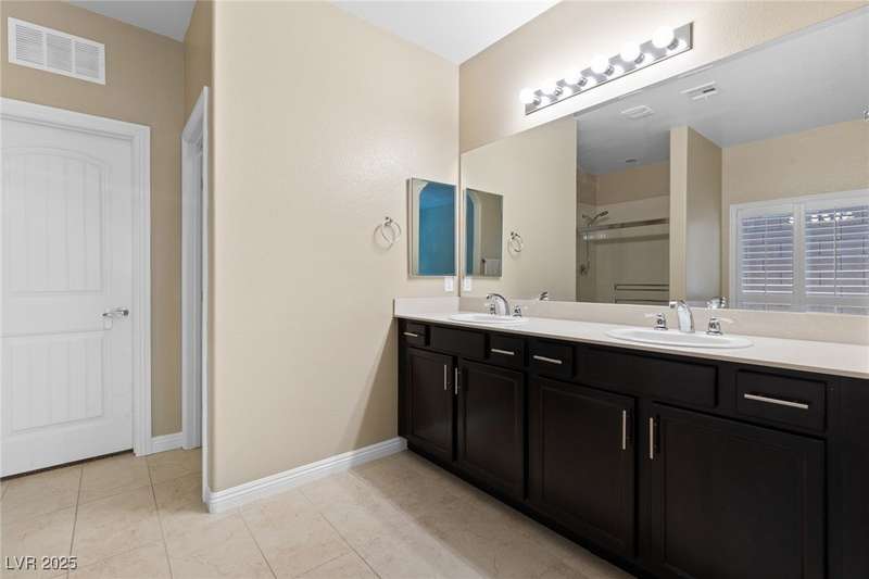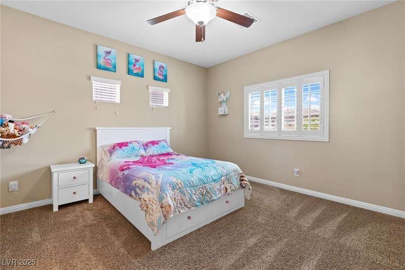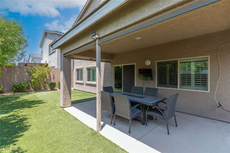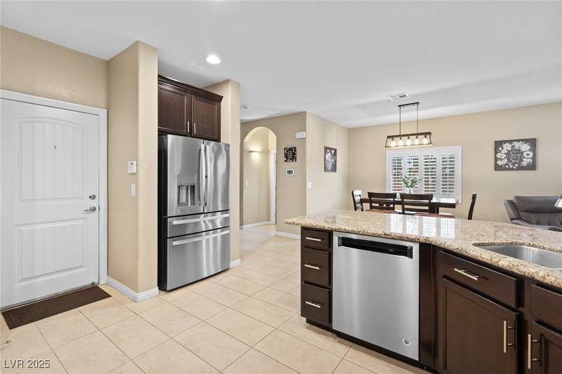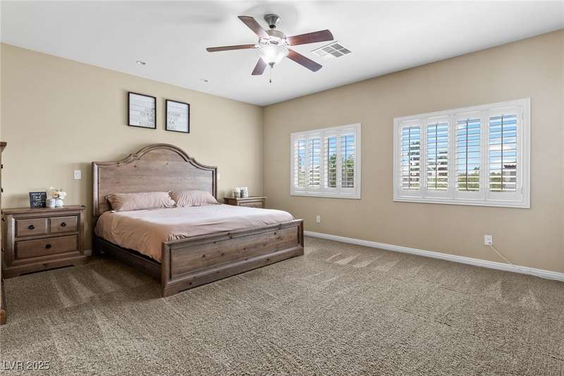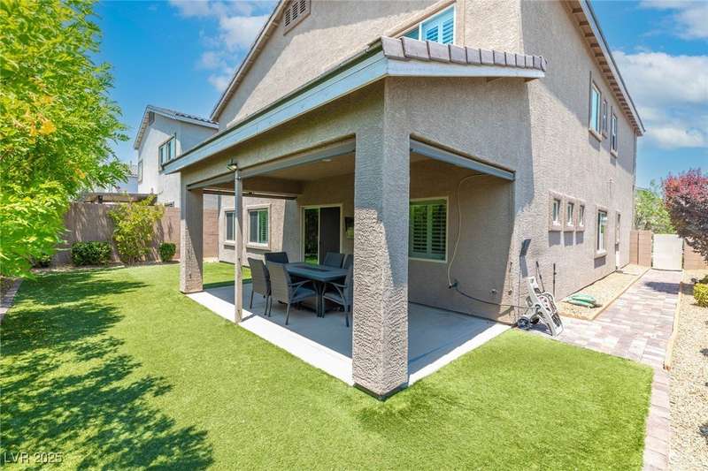 Situated on a corner lot, this two-story home spans 3,179 sq. ft. & offers 9-foot ceilings on both floors for a light & airy feel. Thoughtfully designed with dual primary suites—one on each level—each features oversized closets & private bathrooms. Both suites offer laundry hook-ups, & the upstairs includes a washer & dryer for added convenience. Upstairs, you’ll also find a generous loft, perfect for a home office, playroom, or media space. The chef’s kitchen is outfitted with granite countertops, a full set of stainless steel appliances, and an expansive breakfast bar ideal for casual dining or entertaining. Enjoy modern comforts throughout the home, including ceiling fans in every room, stylish plantation shutters, a 3-car garage, and a covered patio with drop-down solar screens for relaxing in the shade. The backyard is fully landscaped, offering a beautiful and low-maintenance outdoor retreat. Additional features include a reverse osmosis system and water softener.