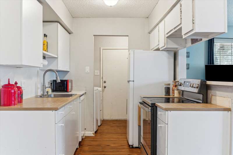 This is a wonderful updated duplex on a private cul-de-sac. With renovated kitchen and bath, and interior completely painted just prior to listing, it is move-in ready. It includes in-home laundry, fully fenced back yard, window coverings, and plenty of driveway parking. Refrigerator is included. HOA maintains the front yard. Tenant will be responsible for maintenance of back yard.