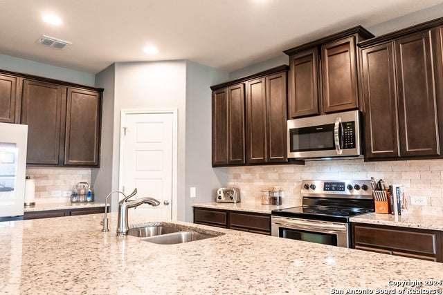 Come FALL in LOVE with everything this HOME has to offer! A stunning 4-bedroom, 3-bathroom residence is perfectly situated on a desirable corner lot. As you step inside, you'll be greeted by a spacious office/flex area, ideal for working from home or working out. Enjoy the convenience of having a split plan separating two well-appointed bedrooms, along with a full bathroom, from the primary suite. Both are located on the main level, providing ample space for family and guests. Primary bath features a large walk in spa shower, ample storage and a separate toilet room. But the highlight of this home is the expansive upstairs retreat, featuring a fourth bedroom complete with its own full bathroom, along with a massive game room-perfect for entertaining or family fun. And as if that isn't enough, the pool table will stay! The kitchen boasts elegant granite countertops and stainless appliances. Home is enhanced with a combination of ceramic tile and plush carpet throughout, which adds both comfort and style. Don't miss your chance to make this beautiful property your own just in time for the holiday season! **Sellers are open to helping with buyer's closing costs or buying down rate.
