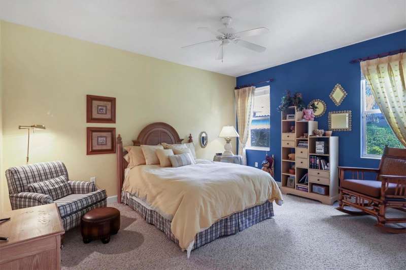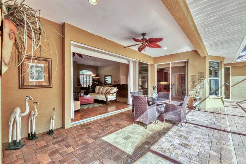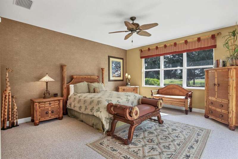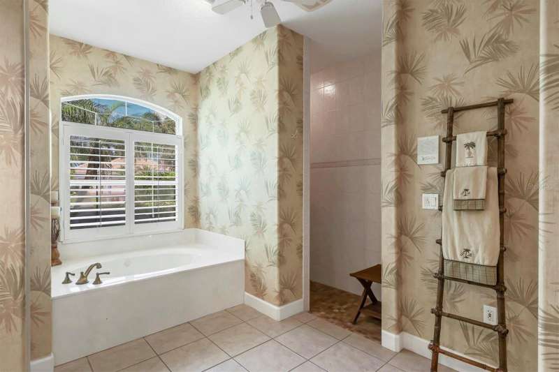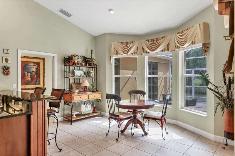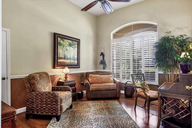 Elegant Custom-Built Home in River Wilderness-Parrish, Florida. Welcome to your own slice of paradise in the prestigious River Wilderness Golf and Country Club Community. This custom-built home offers just under 3000 square feet of living space on a serene half acre lot, sitting on a lake and surrounded by mature trees and lush landscaping that provide both beauty and privacy. Step through the custom California "speak-easy"wood double doors into a grand foyer that opens to a bright spacious floor plan. To your right is a comfortable den, perfect for a home office or study; to your left is a spacious dining area ideal for entertaining. Straight ahead, the large living room features expansive sliding glass doors that open to a generous lanai half under roof and half screened-overlooking the inviting pool with hot tub and tranquil views of the spectacular sparkling lake and natural landscaping. The open kitchen boasts rich wood cabinetry and ample granite counter space, seamlessly connecting to the living and dining areas. This home offers three oversized bedrooms. The primary has two walk in closets with california interior. The other two bedrooms have large closets. All rooms have very high ceilings from 9'4" to 12'4". The indoor utility room has washer and dryer as well as a sink and plenty of cabinet space. The oversized three car garage provides plenty of room for vehicles and a workshop or storage. Designed for both comfort and security, this gated community features a guarded entrance gate. Residents enjoy access to the River Wilderness Country Club, which offers optional membership for golf, tennis, dining and social events as well as a community boat ramp for exploring the nearby Manatee River. Large windows fill every room with natural light. The primary suite features sliding doors that open directly to the lanai, creating a seamless indoor-outdoor flow. This home is both sturdy and serene. AC new in 2019, Electric hot water heater new in 2018. Experience the perfect blend of elegance, space and Florida lifestyle-all within the secure, beautifully maintained setting of River Wilderness. When you arrive you will understand why residents call it Paradise.