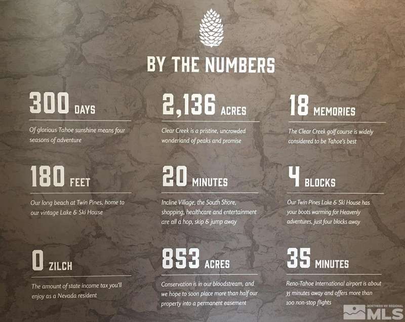 Clear Creek Tahoe is Northern Nevada's most exciting new mountain community just minutes from Lake Tahoe. Owners are enjoying world-class golf, overnight cottages, private hiking trails, swim and tennis center, and a full-service day-use Lake and Ski House. Situated on 1,576 unspoiled acres, homesites here are as dramatic and diverse as the land itself, where the contours, elevation changes, and character of the land offer spectacular views in every direction., Nearly an acre but living much larger, this beautiful homesite puts its owners mere steps to a vast expanse of protected wilderness - more than six-million acres. Yes, private. But also intimate as this site softly and gradually nestles into the lay of the land. Peaks, including the tallest, Duane Bliss, rise dramatically behind the future residence. At Clear Creek Tahoe, their vision is bringing together physical amenities creating a stage for a magnificent life experience. The nationally acclaimed Coore & Crenshaw golf course is fully mature and ranked number one residential course in Nevada. The Lake and Ski House allow members to enjoy 180' of sandy beach, water sports, and shuttle service to Heavenly Ski Resort, and our newly completed Summit Camp offers swimming tennis, hot tub, water slide, bocce, and more. Additional planned amenities include a recently completed, spacious Clubhouse with workout/wellness facility.