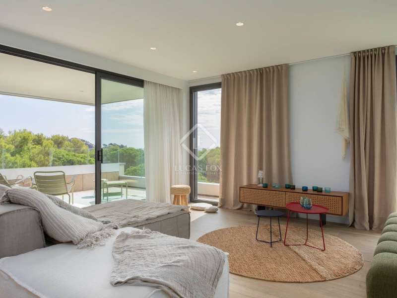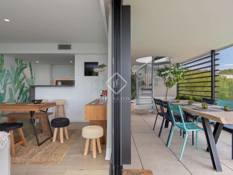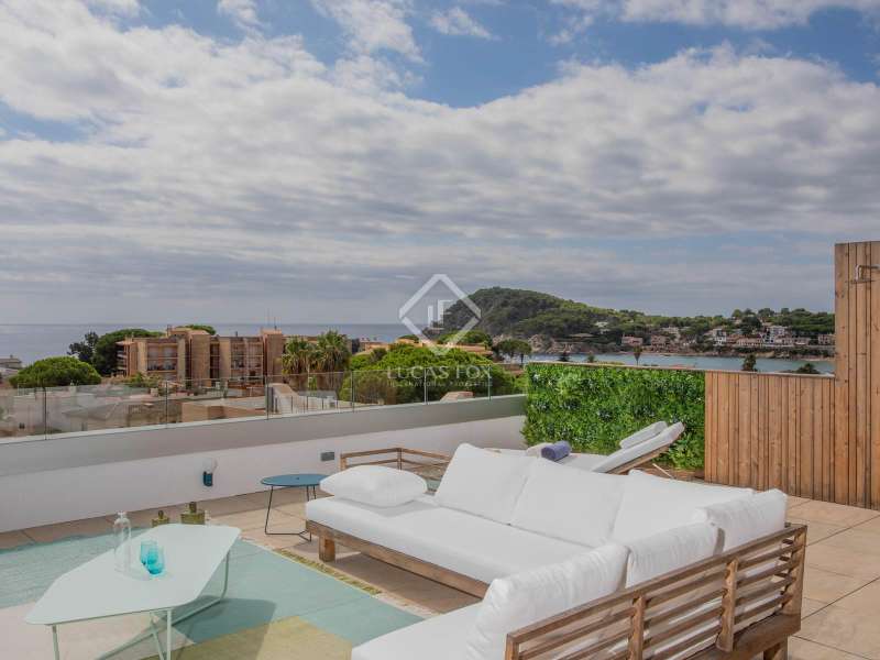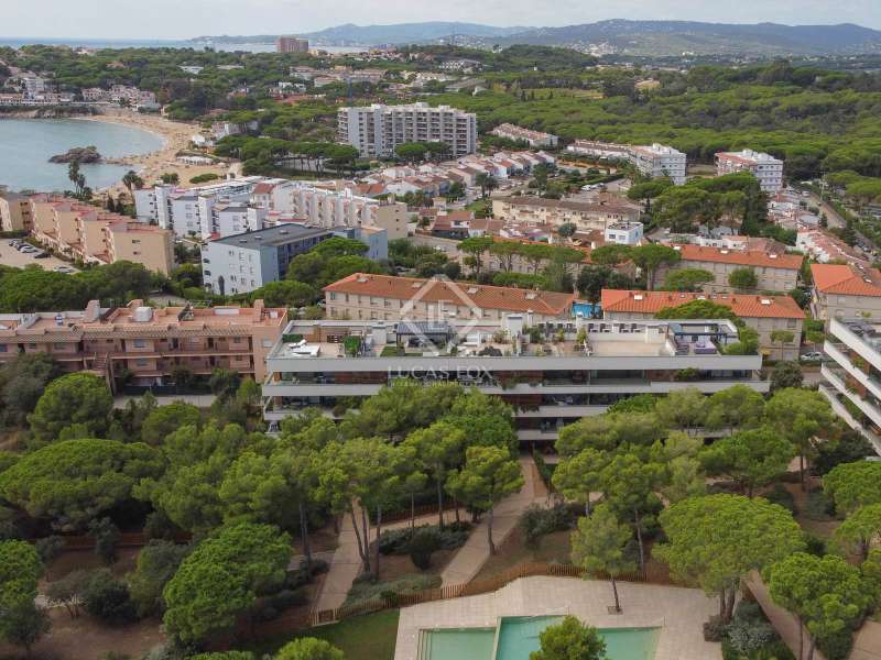 In the area of La Fosca, we find this luxury penthouse with sea views, located in a quiet community with a garden and communal pool, with direct access to the coastal path. The apartment is located in a unique location, nestled in a quiet forest, on the edge of the Protected Natural Interest Area of Castell-Cap Roig, just a few meters from the coast and Cala S'Alguer. The apartment is located on the third floor of the building and has a double east-west orientation, meaning it receives natural light throughout the day. Upon entering the apartment, we find a spacious living-dining room with large windows that provide plenty of light and a modern, fully equipped open kitchen. From the living room we access a first terrace with views of the sea and the pine forest. On the other side of the flat, we find the night area where the main bedroom with a private bathroom and two double bedrooms that share a bathroom are located. The bedrooms face west, towards La Fosca beach, so they offer sea views. In addition, they are equipped with built-in wardrobes. A guest toilet completes the property. On the main terrace, stairs lead us to the wonderful private rooftop terrace, with stunning views of the sea and the Castell-Cap Roig protected area. The property was built with quality materials, including appliances, double-glazed windows and an air conditioning and heating system for total comfort at any time of the year. The apartment also has a private parking space and a storage room in the same building. Please do not hesitate to contact us if you would like more information and to arrange a visit.