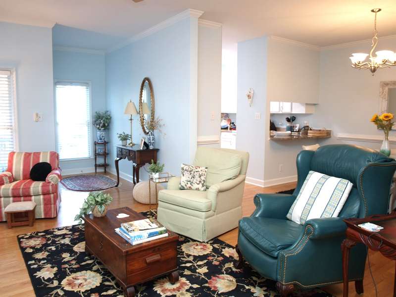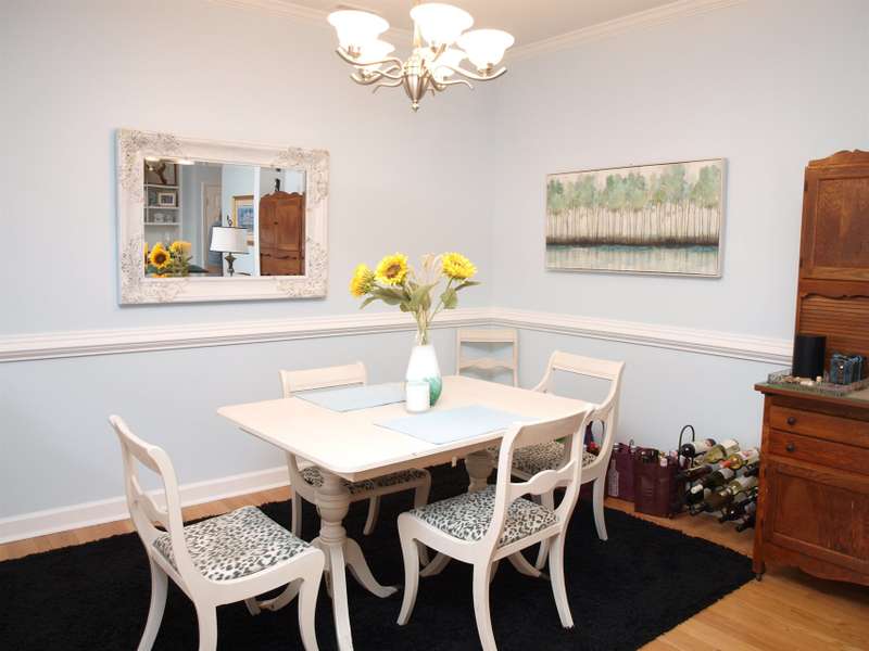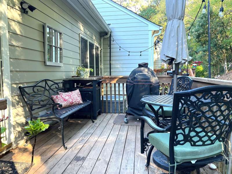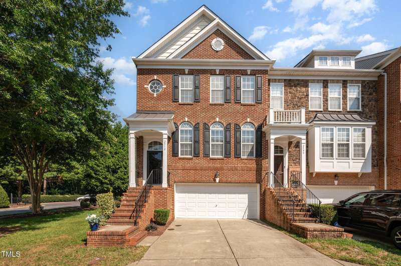 Beautifully Maintained Townhome in a Peaceful North Raleigh Setting. Welcome home to this beautifully maintained townhouse nestled in a serene North Raleigh community, located within easy walking distance to Shelley Lake Park. North Hills Place (NHP) features only 22 townhomes anchored among crepe myrtles, maple trees and beautiful globe street lights. Step through the charming front porch into an inviting main level featuring an open-concept family room and dining area with gleaming hardwood floors. The entire interior was freshly repainted in 2023, giving the home a bright and modern feel as well as new carpet. A cozy marble-surround gas log fireplace, flanked by custom built-in bookshelves and cabinetry, creates a warm focal point in the family room. The kitchen is appointed with upgraded cabinetry and granite countertops, perfect for cooking and entertaining. The desirable main-level primary suite makes first-floor living effortless, with an updated bathroom offering a walk-in shower with built-in seat and a double-bowl vanity and walk-in closet. Upstairs, you'll find two spacious bedrooms, one with a large walk-in closet, a full bath, and a room that can easily serve as a cozy office. Two walk-in attics provide ample, convenient storage. Enjoy your morning coffee or unwind in the evening on the private deck overlooking the wooded common area. Recent updates include new paint and carpet (2023), serviced gas logs (2023), and a new garage door opener with remote (2024). This ideal location is just minutes from Crabtree Valley Mall and North Hills shopping, dining, and more. Included with the home are the kitchen and garage refrigerators, front porch furniture, dining room mirror, and a nearly new Samsung washer and dryer (1 year old). Experience comfort, convenience, and charm?all in one perfect North Raleigh home.
