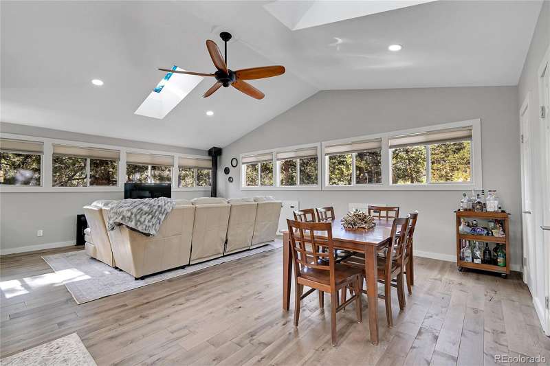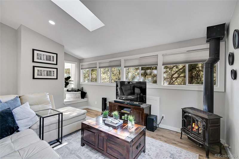 Welcome to your dream retreat in Conifer, Colorado! Situated on a spacious 1.74-acre lot, this captivating home offers tranquility and convenience. As you drive up the driveway, you're greeted by an oversized attached 3-car garage-a rare gem in this area, providing ample space for vehicles and storage. Step inside to discover a thoughtfully remodeled interior where modern elegance meets cozy comfort. The open, bright floor plan is ideal for all the ways you live and entertain, and you'll love the beautifully updated kitchen and bathrooms, a testament to quality craftsmanship and attention to detail. Sunlight streams through generous windows, enhancing the warmth of your living spaces and inviting the outside in. Spacious decks beckon for morning coffee or evening stargazing, perfect for entertaining or simply soaking in the serene mountain atmosphere. As if the huge garage isn't enough, there's a storage shed for more toys and for the four-legged members of the family, there's a large fenced dog run. Despite its peaceful setting, this home is conveniently close to county-maintained paved roads and minutes from Hwy 285, ensuring easy access and smooth travel year-round. Whether you're seeking a peaceful permanent home or a mountain escape with easy access to amenities, this foothills treasure offers it all. Come and experience a harmonious blend of nature and modern living-this is more than a home; it's a lifestyle.