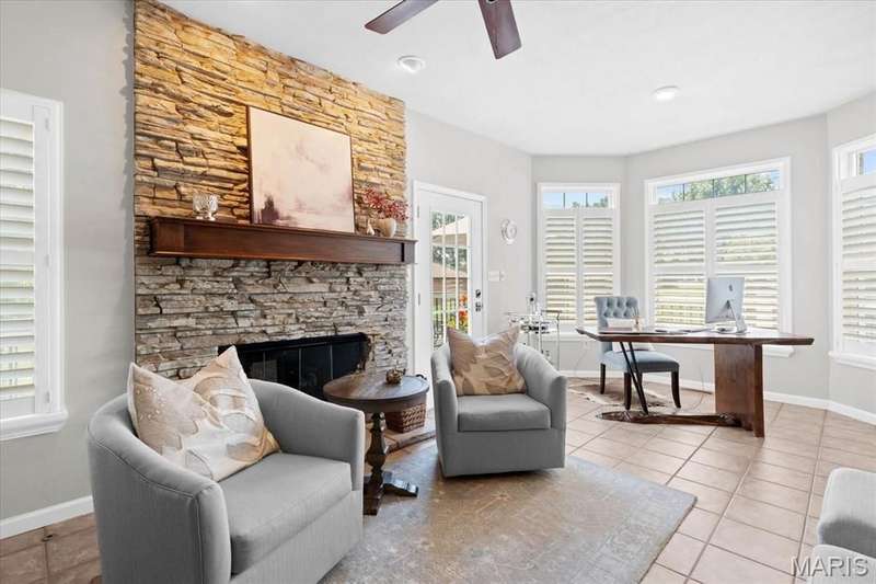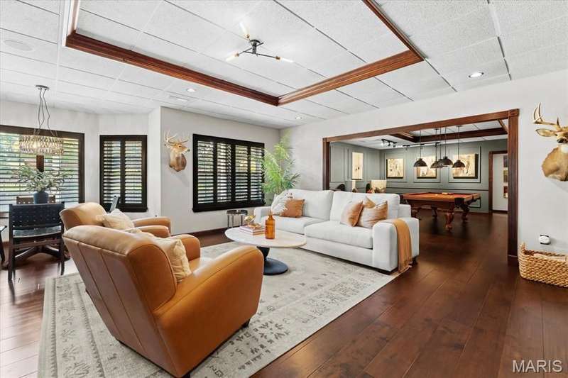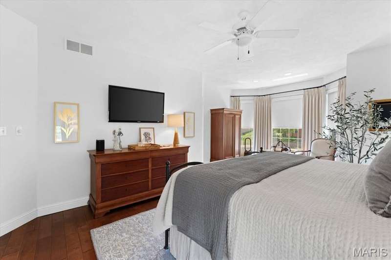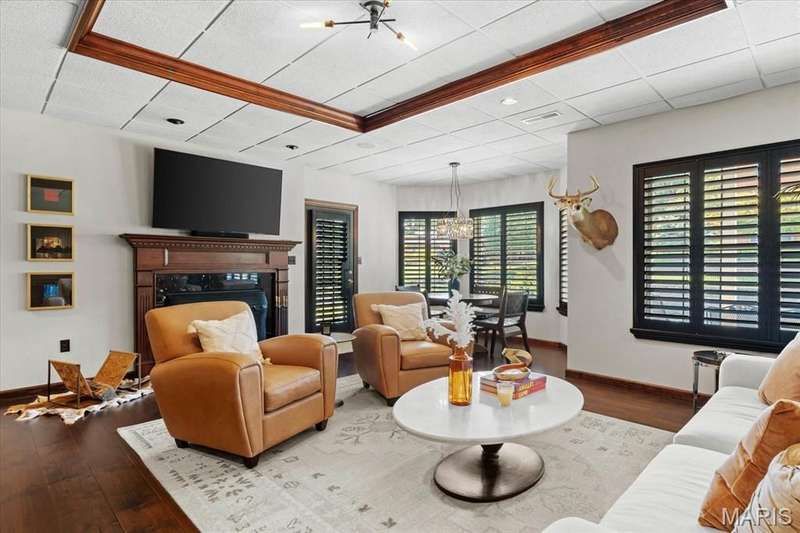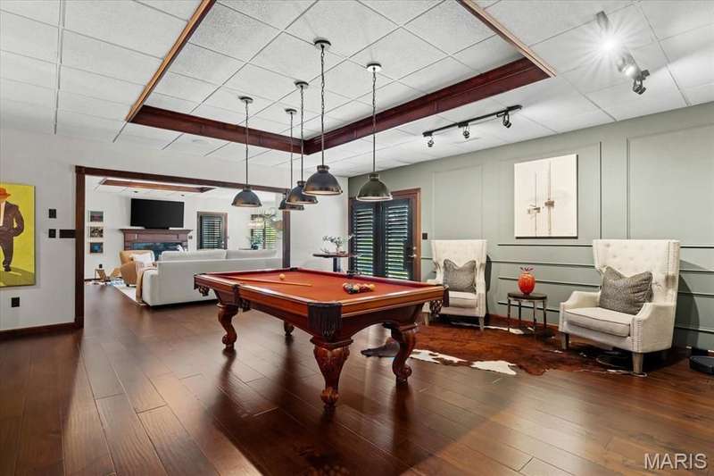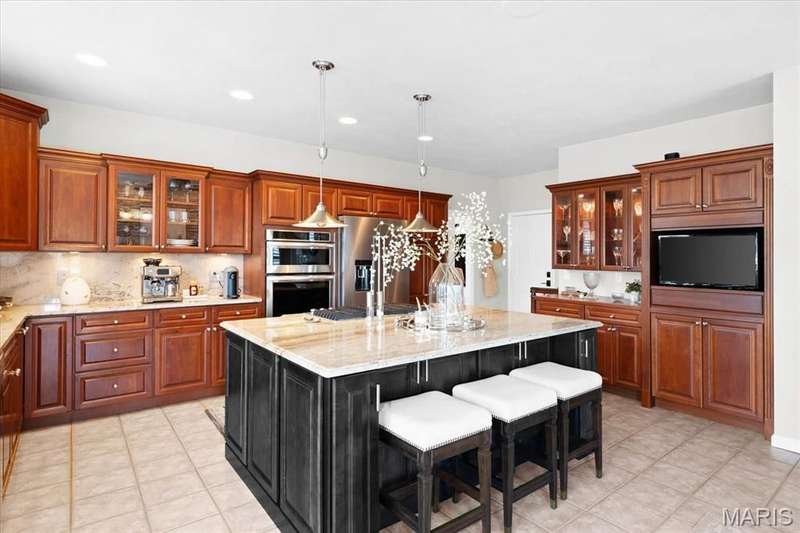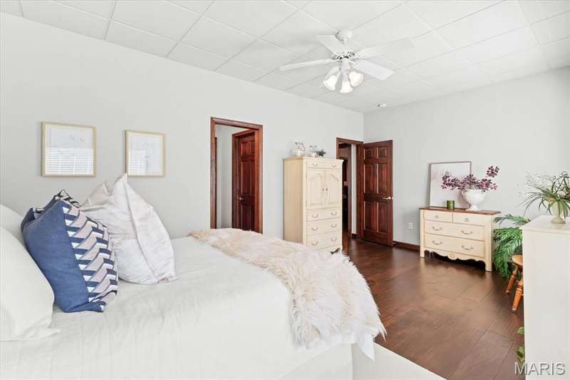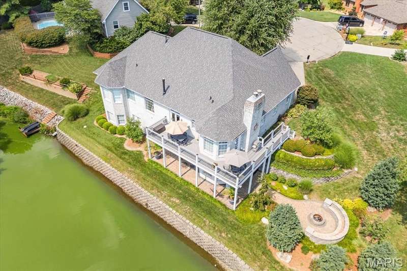 Welcome to this remarkable 4-bedroom, 4-bathroom residence offering the ultimate blend of elegance and comfort. Perfectly positioned on a cul-de-sac with direct lake access, this property showcases breathtaking water views from nearly every angle. Step outside to enjoy a spacious composite deck, a lower-level patio with fire pit, and endless opportunities to entertain. Inside, the open-concept living and dining areas feature hardwood floors, a cozy fireplace, and expansive lake views. The gourmet kitchen boasts granite countertops, an oversized island, a fireplace with intimate seating area, and a convenient powder room. The main-level private master suite offers dual closets and an updated spa-like bath with a floor-to-ceiling tiled shower and heated floors. Downstairs is a true entertainer's retreat with a large family room anchored by a wood burning fireplace, wine cellar, pool table, wet bar, and access to the patio. A guest bedroom with full bath and walk-in closet, laundry room with built-ins, and a sauna area add to the lower level amenities. Two oversized storage areas, including one with a walk-out for workshop or utility use, provide practicality and flexibility. Additional highlights include a two-car finished garage. Many of the home's systems have been updated within the past three years, ensuring peace of mind and modern efficiency. With luxurious updates throughout, this home is designed for both relaxation and celebration.