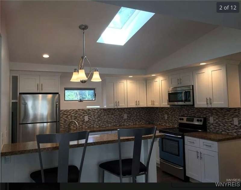 Beautifully remodeled second floor unit with newer stainless steel appliances, dishwasher, in unit washer & dryer, supplied by Landlord. Open floor plan with breakfast bar and skylight. Soft close cabinets, mosaic tile, and many more updates. Turn key apartment available on October 1st. Rent includes all utilities minus internet. Driveway parking. No Pets. No Smoking. The apartment is approx. 870 sq. ft. Per landlord: available for occupancy 10/1. 1 year lease required. Security deposit is equal to one month's rent. Landlord pays electric, gas, water, sewer, and trash. Renter's insurance and credit check required to apply. RentSpree is the preferred application, but BNAR and Zillow applications also accepted.Great location, close to University of buffalo Amherst Campus