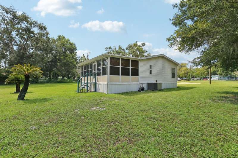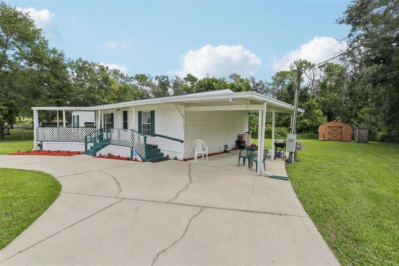 GORGEOUS PROPERTY ! GREAT LOCATION ! NO HOA OR CDD ! NO BACKYARD NEIGHBORS ! FENCED-IN YARD ! VERY PRIVATE SETTING WITH PART OF PROPERTY SITTING ON CONSERVATION AREA ! BRING YOUR RV/BOAT/TRUCK/TRAILERS/PETS AND CHICKENS ! Come See This Beautiful Mobile Home With 3 Bedrooms 2 Bathrooms That Has “Just Over” 1,100+ Square Feet Of Living Area Plus LARGE COVERED CARPORT AND FLORIDA ROOM In Back Of Home ! This Home And Property HAS SOME AMAZING FEATURES: Newer Roof (2022) HVAC (Approx. 8 Years Old) Hot Water Heater (Approx. 5 Years Old) LARGE CIRCULAR DRIVEWAY Front Yard, Nice Size Shed For Additional Storage And Covered Front Porch ! You Can Sit In Your VERY PRIVATE FLORIDA ROOM And Enjoy Relaxing With A Favorite Beverage Or Book ! The Back Yard Offers The Best Of Nature And LIVING THE FLORIDA LIFESTYLE As You Can Entertain Guests/Family/Friends ! There Is Plenty Of Room On This Property To Add A Detached Garage, A Private Pool Or Store Your Vehicles And Adult Recreational Toys ! This Home Has Public Water With Septic Tank So Your Utility Costs Will Be Less ! THIS HOME AND PROPERTY IS A MUST SEE ! Please Call Your Agent Today To Schedule Your Private Showing !
