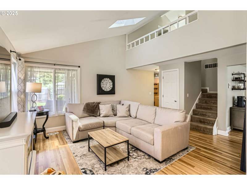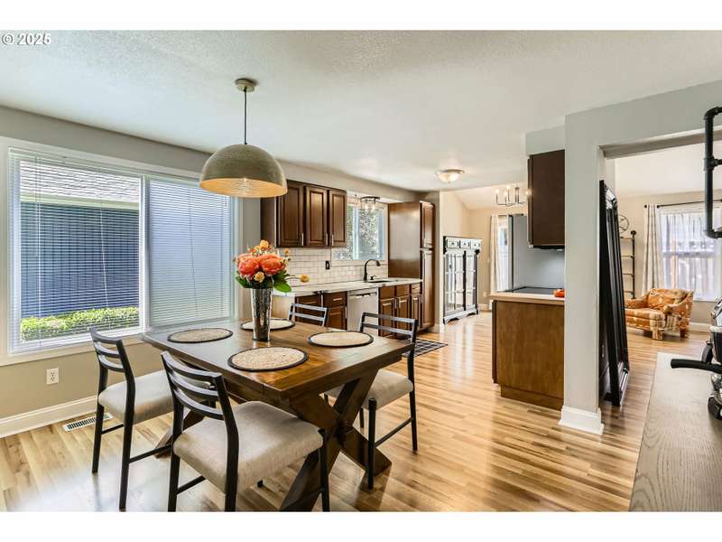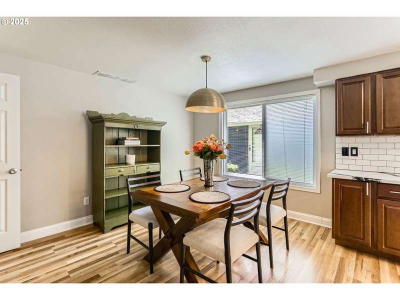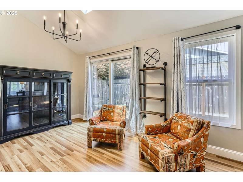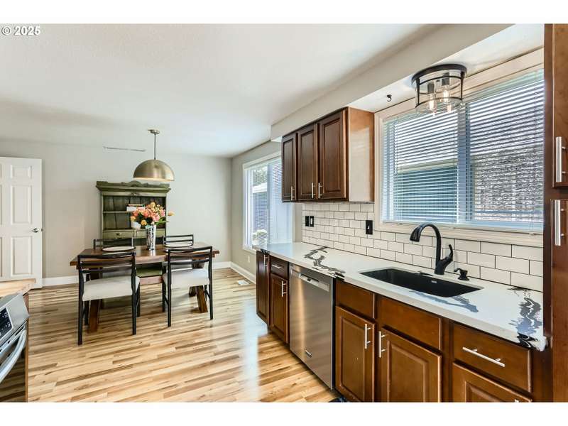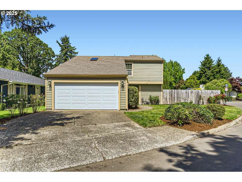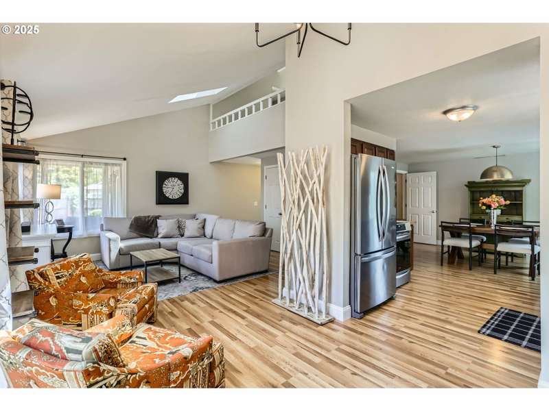 This lovely 4-bedroom, 2-bath home features a blend of comfort, style, and functionality. The beautifully updated kitchen includes stainless-steel appliances and new quartz countertops, perfect for everyday cooking and entertaining. New laminate flooring throughout the main level, complemented by luxury vinyl flooring in both bathrooms, bring easy maintenance and style to the main living areas. The 4th bedroom is located on the main floor and includes a sliding glass door leading directly to the backyard, offering flexible space to use as a home office, guest room, hobby area or other possible needs. Vaulted ceilings and skylights create an airy, sun-filled atmosphere throughout the home, keeping it light and bright. Enjoy a corner lot with a fenced backyard and covered patio. HOA includes its own community park and pool. It's also located just around the corner from Shadywood Park for more outdoor activities that include playground, picnic tables, and walking paths. Don’t miss this well-maintained gem in a fantastic neighborhood! [Home Energy Score = 4. HES Report at https://rpt.greenbuildingregistry.com/hes/OR10205069]