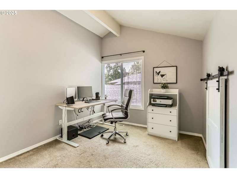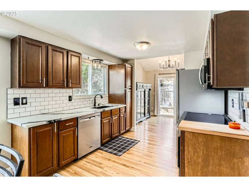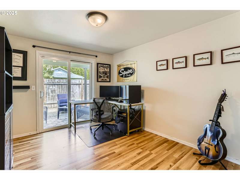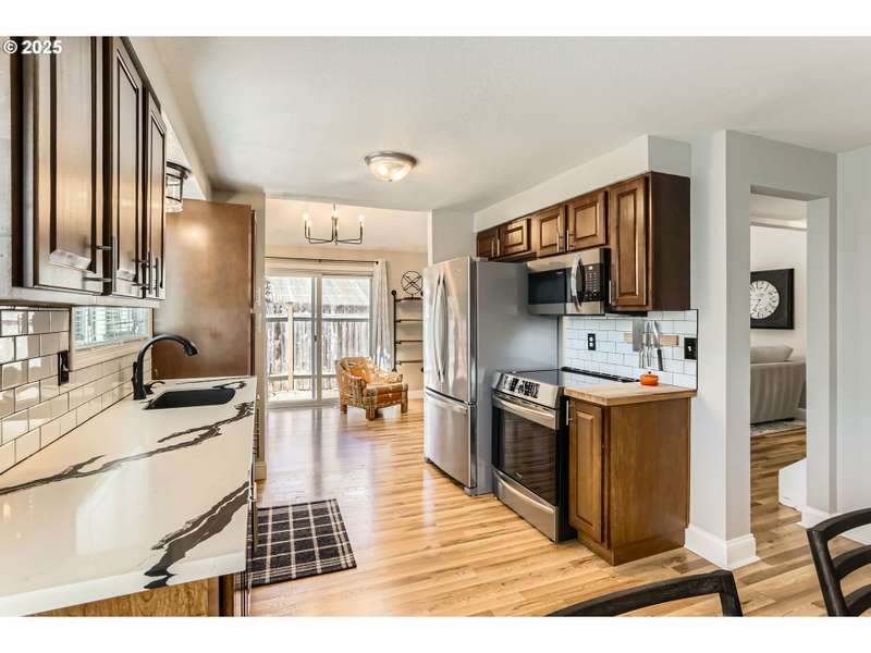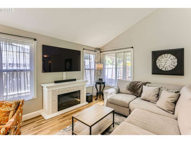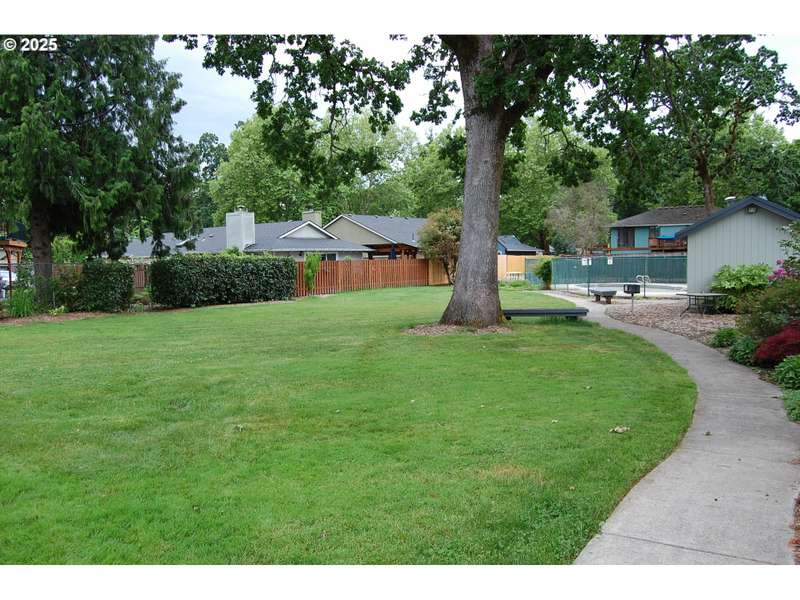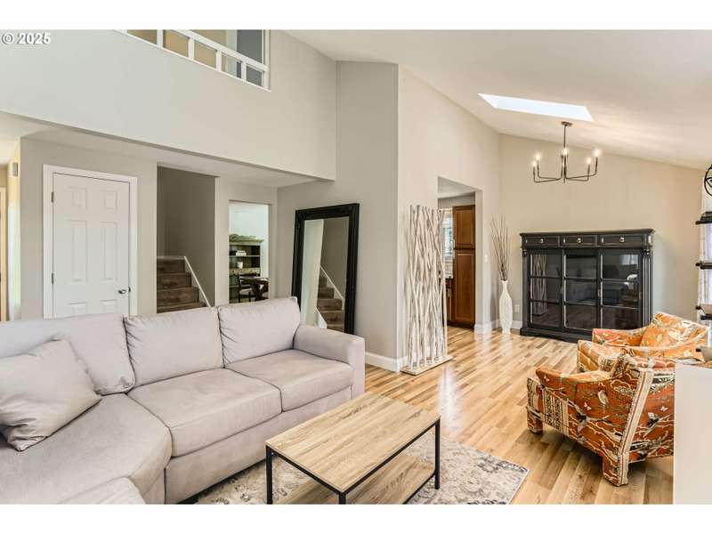 This lovely 4-bedroom, 2-bath home features a blend of comfort, style, and functionality. The beautifully updated kitchen includes stainless-steel appliances and new quartz countertops, perfect for everyday cooking and entertaining. New laminate flooring throughout the main level, complemented by luxury vinyl flooring in both bathrooms, bring easy maintenance and style to the main living areas. The 4th bedroom is located on the main floor and includes a sliding glass door leading directly to the backyard, offering flexible space to use as a home office, guest room, hobby area or other possible needs. Vaulted ceilings and skylights create an airy, sun-filled atmosphere throughout the home, keeping it light and bright. Enjoy a corner lot with a fenced backyard and covered patio. HOA includes its own community park and pool. It's also located just around the corner from Shadywood Park for more outdoor activities that include playground, picnic tables, and walking paths. Don’t miss this well-maintained gem in a fantastic neighborhood! [Home Energy Score = 4. HES Report at https://rpt.greenbuildingregistry.com/hes/OR10205069]