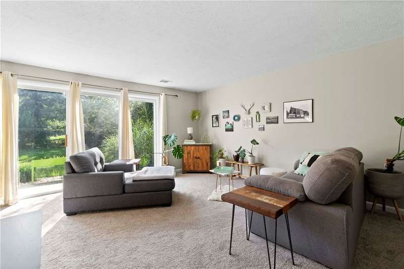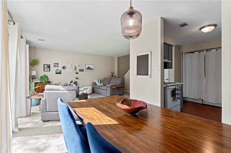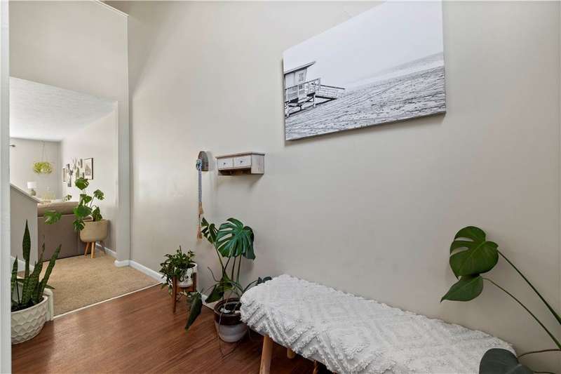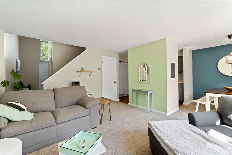 Prime cul de sac location for this charming townhome offers a serene setting paired with a highly convenient location. Step inside the sun-drenched 2 story entry, complete with a generous coat closet & an open floor plan designed for comfortable living & easy entertaining. New carpet in a neutral, calming color palette enhance the inviting atmosphere throughout. L-shaped living & dining area allows for a seamless flow, while sliding glass doors span the back wall & fill the space with natural light & open to a patio & grassy yard-perfect for outdoor enjoyment. The kitchen features painted light gray cabinets, an electric stove & refrigerator. Just steps away, the adjacent laundry room is fully equipped with a side-by-side washer & dryer & additional storage. Upstairs, is a spacious primary suite including a walk in closet, make up vanity & direct access to the full bath. A generously sized guest bedroom & a versatile 13x3 loft area-ideal for your Peloton, home office or reading nook.