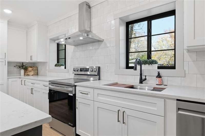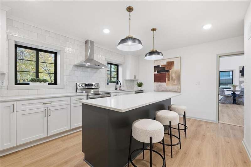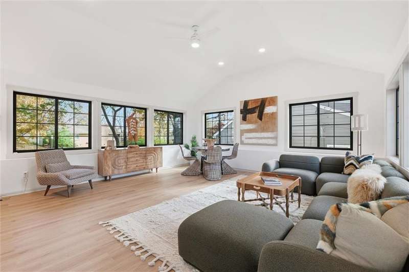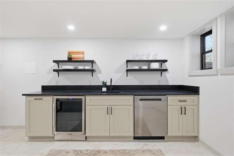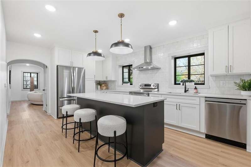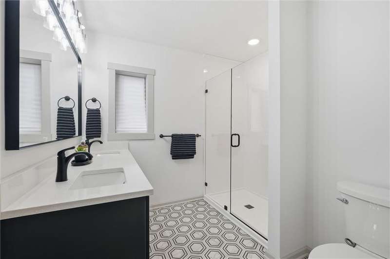 OPEN HOUSE Saturday 11/15 & Sunday 11/16 11am- 2pm. Top quality renovation updated inside and out down to the studs on the edge of KU campus. Easy walk to class, Allen Fieldhouse and David Booth Kansas Memorial Stadium. Virtually everything is new: architectural roof, all new high efficiency HVAC and water heater, brand new electrical and plumbing. All new windows, maintenance-free LP SmartSide exterior and composite deck. Fabulous white kitchen with stainless steel appliances and vent hood, amazing sun splashed living room with soaring ceiling. Two generously sized bedrooms on the main floor flank full bath with walk-in shower, double vanity and designer tile. Lower level bar functions as second kitchen allowing for optional second independent living space with its own entrance, dedicated laundry and two additional conforming bedrooms. 2-car attached garage, with secure wall between the two bays and a driveway that can fit half a dozen more vehicles! Beauty here is more than skin deep; dry basement, brand new sewer line and the entire structure is made out of rock CONCRETE (everything-- the interior and exterior walls, the floor system and ceilings)-- this house is literally rock solid! University Place neighborhood is steeped in history with Frank Lloyd Wright influences (Wright himself designed the house across the street for Architecture Professor George Beal). James Naismith was an early developer of the subdivision. Mature trees, smart people, and the amazing cornucopia of the University of Kansas libraries, music, art, speakers, and sports all within a few blocks.