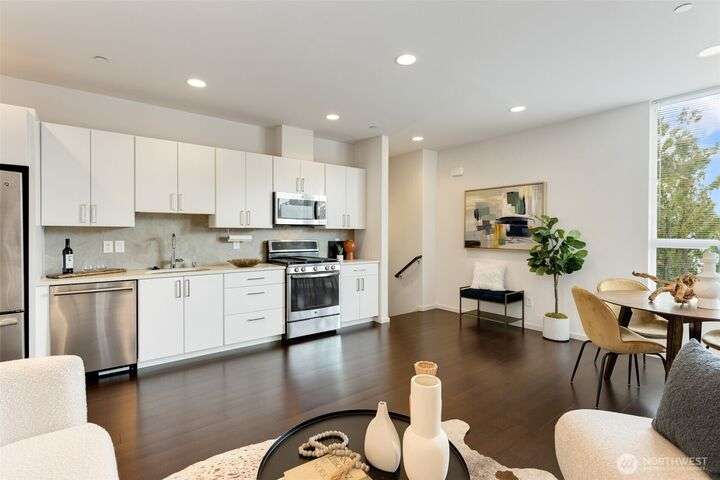 Live/Work in the Heart of Wedgwood! This rare and versatile townhome offers the perfect blend of residential comfort and creative /commercial use. The flexible main level features soaring ceilings and a wall of windows that floods the space with natural light, complemented by concrete floors and an oversized half bath. Upstairs, enjoy open-concept living with rich hardwood floors, a sleek designer kitchen with S/S appliances, one bedroom, 3/4 bath, & ample storage throughout. Efficient ductless mini-splits, & full-size W/D. Located in vibrant Wedgwood with a Walk Score of 87, you’re steps from cafes, groceries, parks, & more. Don’t miss this unique opportunity to live, work, & thrive in one of Seattle’s most beloved neighborhoods!