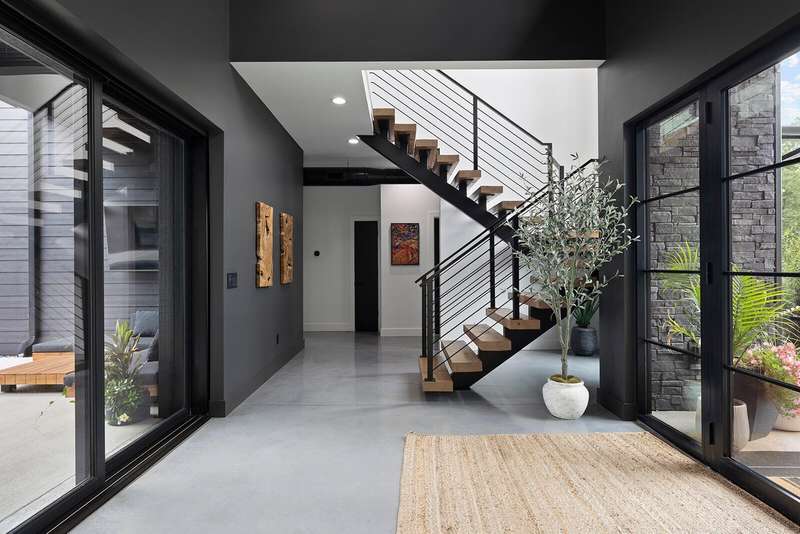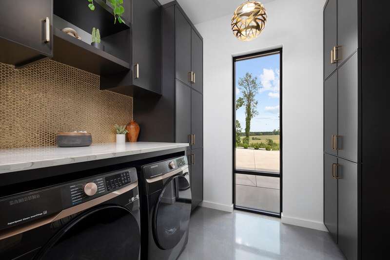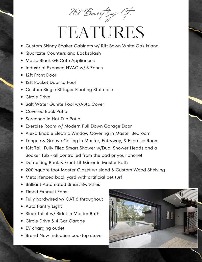 Be sure to check out the virtual tour on this listing! After you pick your jaw up off the floor, you'll start to realize just how extra this house is. It was even 417 Magazine's Home of the Year in 2023 & is located in the gated Villages at Wicklow - Estates at Enniskerry. Before you ever walk in, you'll fall in love with the dramatic roof lines, bold colors, and the circle drive that welcomes you to 861 Bantry Ct. Once you step inside the 12 ft glass front door, you'll immediately notice the big glass door in front of you. Well that is another 12 ft door, but this one is a pocket door where all 12 ft disappear into the wall. Keep looking around in the entry way and you will see the custom single stringer floating staircase and tongue & groove ceilings. Moving into the great room, you'll find a breathtaking kitchen, complete with a rift sawn white oak island, quartzite counters, custom skinny shaker cabinets, & matte black GE Cafe appliance, including a brand new induction cooktop! A common theme throughout this impeccably designed modern home are the huge and abundant windows. The amount of natural light they provide will make you feel right at home every time you walk in. The master suite is a whole other story. You'll find a screened in hot tub patio right off the bedroom. In the bathroom, you'll find a huge double vanity, with back & front lit defrosting mirror. The shower is enormous and features a chic black soaker tub & two shower heads, all controlled from the smart pad or your phone! The shower does provide some drama though, with its 13ft tall, fully tiled walls and modern window for more natural light. Moving into the closet will drop your jaw once again. It is 200 sf, complete with a huge storage island with quartz counters and custom wood cabinets for plenty of well thought-out storage.Out back you'll find a gunite pool with auto cover and a fenced yard with artificial turf and covered patio! The 4 car garage includes an EV outlet!