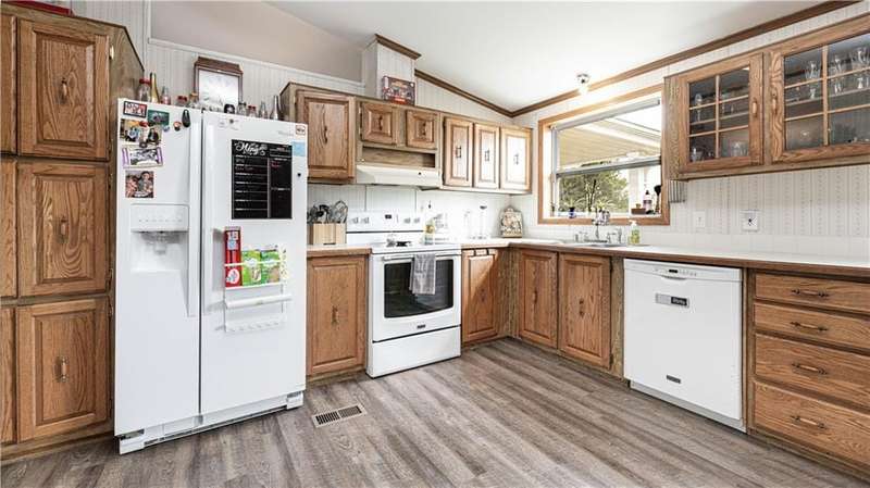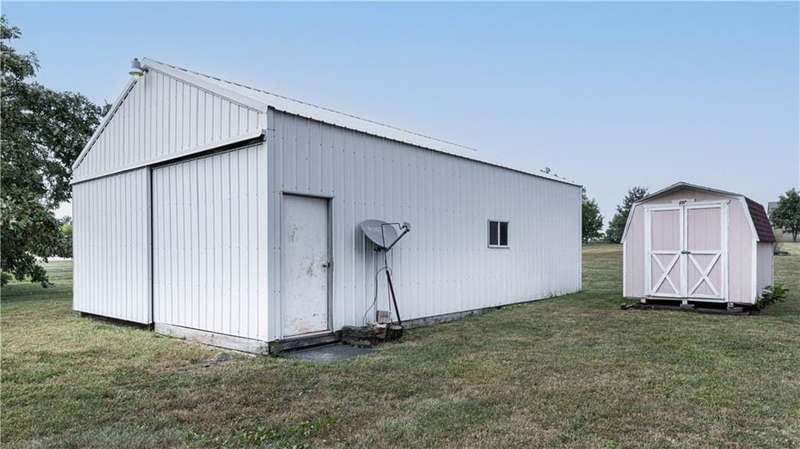This charming ranch home is the best of ALL the worlds. 2 completely separate living spaces! Upstairs is a 3 bedroom 2 bath ranch and the basement features a huge storage room and a complete 1 bedroom apartment with full bath and FULL kitchen. Enjoy sprawling out on 3 acres of land on the north side of Pleasant Hill. The peaceful setting is idea for anyone looking for a little more land and some peace and quiet. Recently updated flooring throughout the main level, new interior paint as well. The shop on site is a fix it all dream - complete with a hoist (not brand new) and plenty of room to store all your toys!