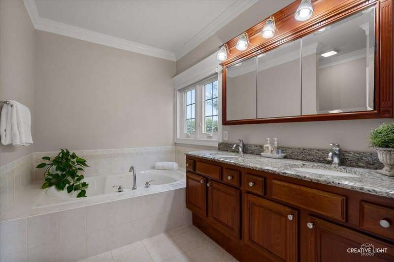 In The Villages at Mill Creek, you can enjoy the good life without the worry of yard work or snow shoveling. Perfect for a busy professionals or an active downsizer who values quality and space without the upkeep, this Village Home offers a rare combination of convenience, privacy, and plenty of room to live and entertain. Mill Creek is one of Geneva's premier golf club communities, offering a lifestyle that combines natural beauty with resort-style amenities. Entering from the garage, you step into a mudroom that leads directly to the lower level, where a finished walk-out basement features a custom bar, movie area, and game table-ideal for entertaining. A large unfinished section offers ample storage and a workshop area, while sliding doors open to a private patio. A split staircase brings you to the main level, the heart of the home. Here, vaulted ceilings and a cozy fireplace anchor the family room, which opens to a private deck. The gourmet kitchen, complete with granite countertops, cherry cabinetry, stainless steel appliances, a walk-in pantry, and butler's pantry, flows seamlessly into the dining area. French doors lead to a light-filled office, and the main-level primary suite provides a private bath and a peaceful retreat. Another split staircase leads to the upper level, where you'll find two generously sized bedrooms joined by a Jack & Jill bath, a large versatile loft with custom built-in bookshelves, and a separate cozy nook that can serve as a reading spot, small office, or flex space. With approximately 2,700 sq. ft. above grade (3,700 sq. ft. including the finished basement), 3 bedrooms, 3.5 baths, and two outdoor living spaces, this home delivers flexibility, privacy, and plenty of room for both relaxation and entertaining. Throughout, you'll find custom millwork, hardwood flooring, recessed lighting, crown molding, and transomed doors-all signs of exceptional craftsmanship. The garage adds further practicality with an epoxy-coated floor and storage cabinetry. Impeccably maintained and move-in ready, this home allows for a stress-free transition, with quick close possible-just in time to enjoy the holidays. Beyond your door, Mill Creek offers miles of walking and biking trails, neighborhood parks, natural preserves, a golf club, community pool, and town center-all making this master-planned neighborhood one of Geneva's most desirable places to live.