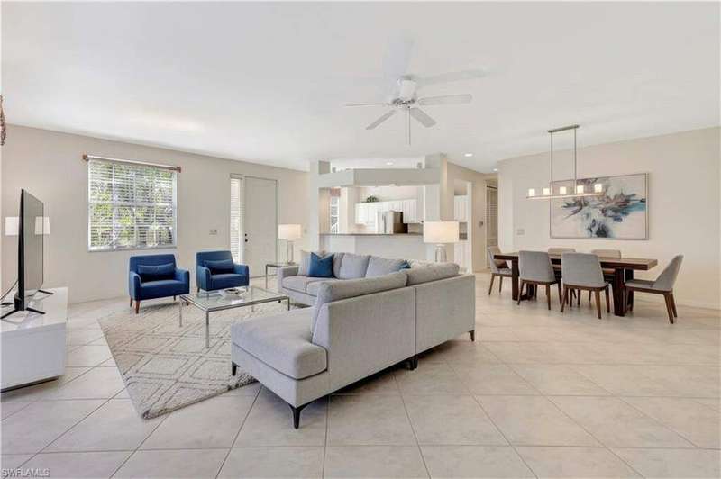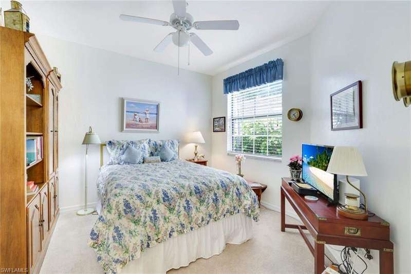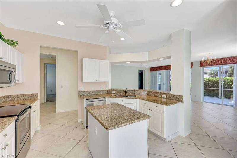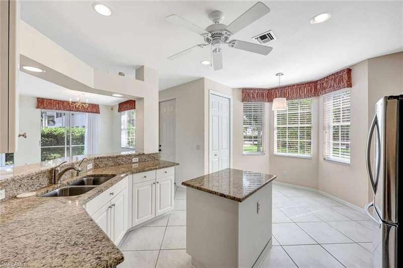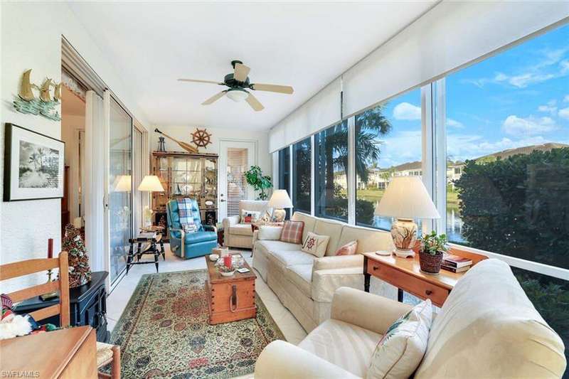 This lakefront 3BR/2BA end-unit condo offers abundant, unobstructed natural light from the south side. The lanai has been enclosed with impact glass sliders and provides an extended light & bright living area. The kitchen features newer appliances and granite countertops. The 2-car garage includes finished attic storage. Located steps from the marina, residents have deeded access to Keewaydin Island Beach via private boat shuttle. Please inquire with the Club Membership Director regarding available membership levels. Windstar is the only Naples community with a marina plus golf and tennis; the US Open Pickleball facility and Naples Botanical Garden are conveniently nearby. Old Naples fine dining & shopping is just minutes away. ...and The Sunsets are Free!