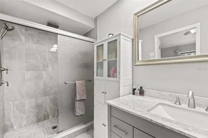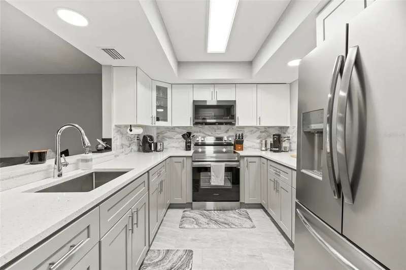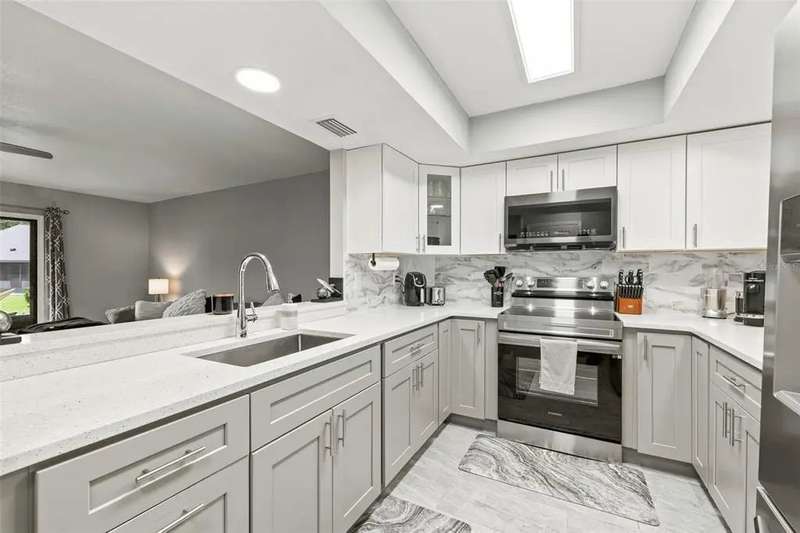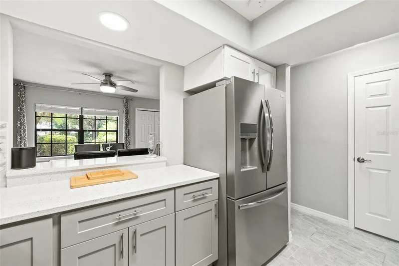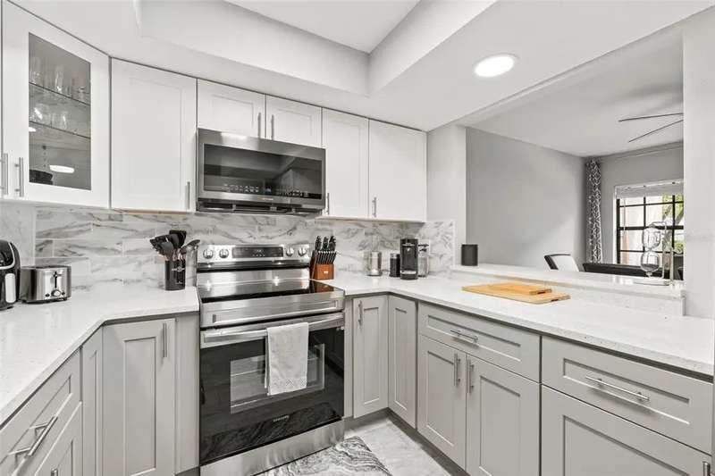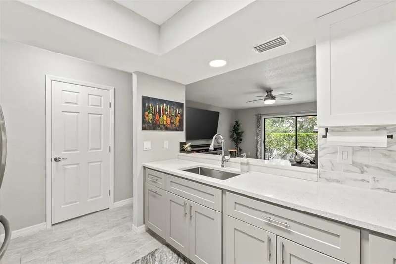 Welcome to Beekman Lakes, a highly sought-after lakefront community just minutes from Downtown Sarasota, Siesta Key, Lido Key, and St. Armands Circle. This completely renovated two-story townhome has been updated from top to bottom with attention to every detail. Inside, you’ll find new wood-grain porcelain tile flooring throughout, an open and bright layout, and a fresh, modern feel. The kitchen features quartz countertops, custom white cabinetry, a decorative backsplash, farmhouse sink, brand-new stainless steel appliances, and a breakfast bar that opens to the dining area—perfect for entertaining friends and family. Upstairs offers two spacious master suites for a true split floor plan, each with cathedral ceilings, walk-in closets, and fully remodeled bathrooms. One features a rain shower for a spa-like touch. The living room opens to a private patio with a new concrete deck (2024), overlooking the lake and fountain—ideal for enjoying your morning coffee or a glass of wine in the evening. Major upgrades include a new roof (2023), new A/C system with updated ductwork and thermostat (2021), new water heater (2021), full-size LG washer and dryer, and a Ring camera system with a new leaded glass entry door. The kitchen, bedrooms, and bathrooms have all been completely renovated, making this home truly move-in ready. With two assigned parking spaces, no CDD fees, and a prime location close to Detweiler’s, Whole Foods, Pura Vida, UTC Mall, Lakewood Ranch, the Sarasota Airport, and I-75, this townhome offers the perfect blend of comfort, convenience, and modern Sarasota living.