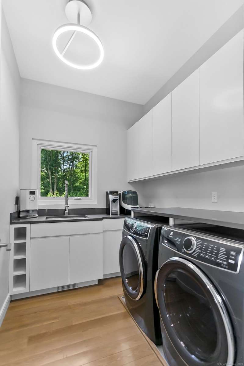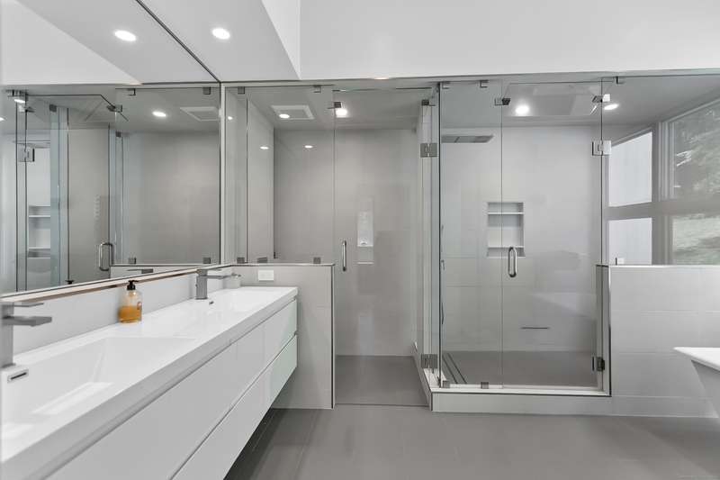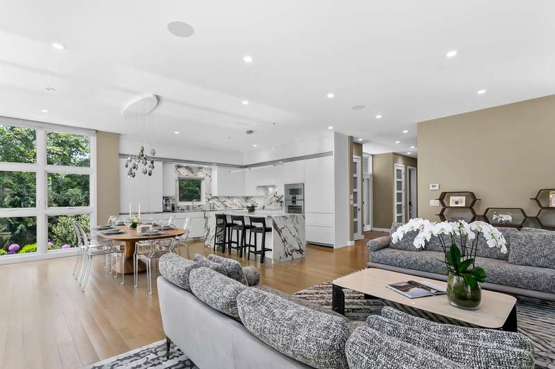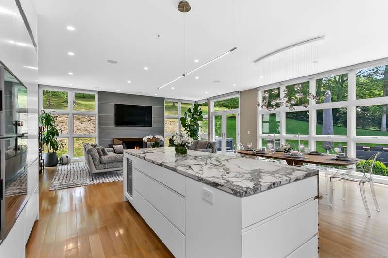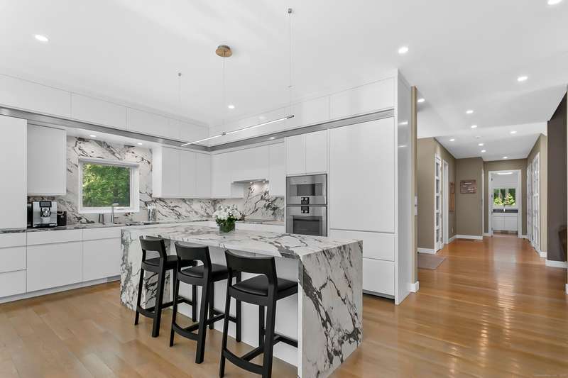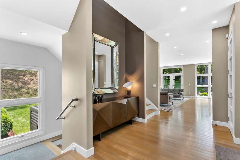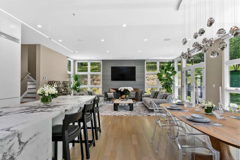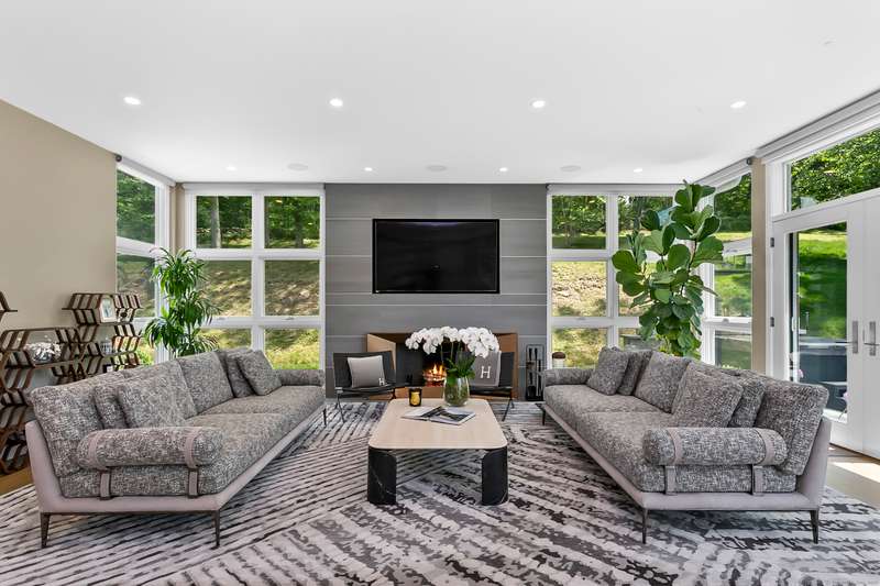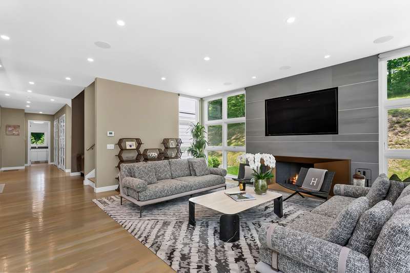 A rare & exceptional estate offering luxury, comfort & impeccable design await! Set on pristine grounds w/ stunning landscaping, this modern masterpiece has over $400K in upgrades, making it truly beyond compare. This 11-room, 5-bed, 4.5-bath home features brilliant architectural design & every amenity today's buyer desires. The first level w/ abundant sunlight w/ window walls & soaring 9+ ft ceilings. A chef's dream, the eat-in kitchen offers Gaggenau & Sub-Zero appliances, designer backsplash & large island w/ new waterfall counters. The family room w/ oversized French doors open to the new expanded bluestone patio, ideal for indoor/outdoor entertaining, plus a wood-burning fireplace pre-piped for gas. Also on this level: guest suite/home office w/ full bath, stylish powder room & laundry. Upstairs features 3 bedrooms incl. a luxurious primary suite w/ dual walk-ins & spa-like bath & 2 bedrooms sharing a Jack & Jill. The lower-level w/ quality living space w/ 5th bedroom w/ walk-in &