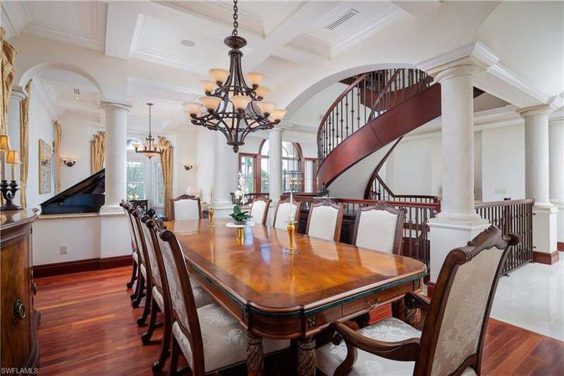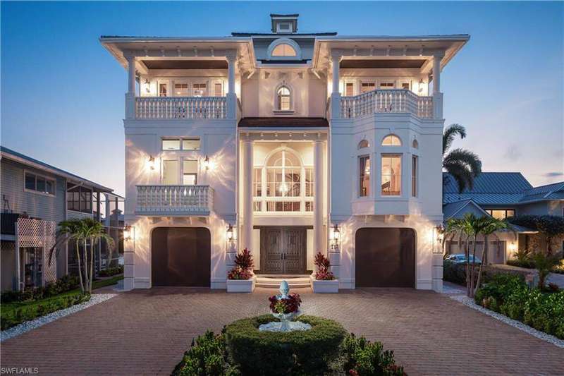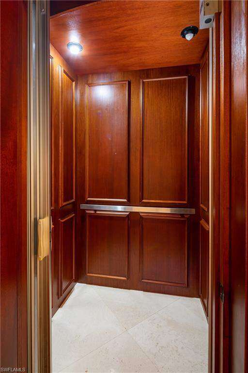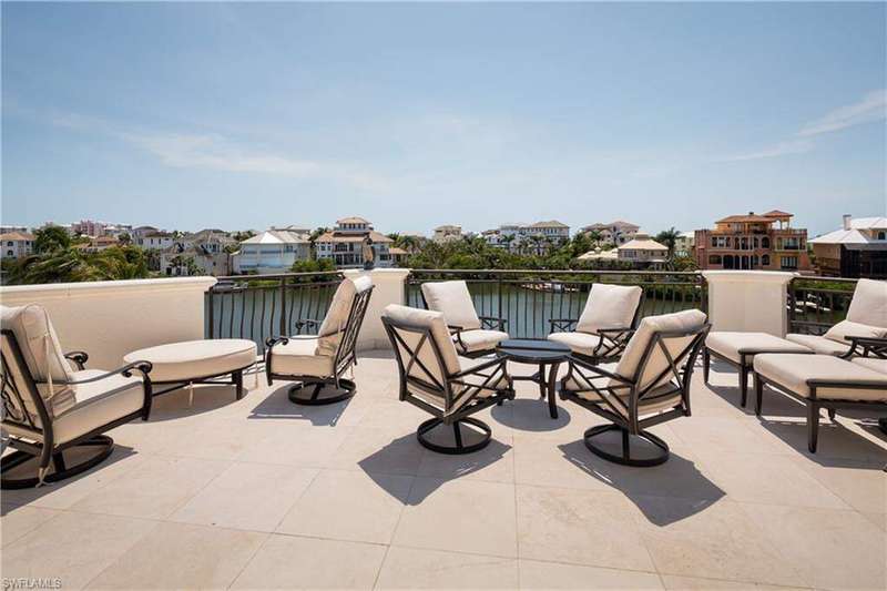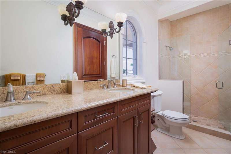 Beautiful home with spectacular Bay views, located in the double-gated "Bayfront" neighborhood of Collier County's premier "Barefoot Beach" community. Delight in breathtaking wide bay views from nearly every room & prime Western exposure for magnificent sunsets over the pool/spa. Only a 5-minute walk to the beach or a 10-minute boat ride to the Gulf from your dual private boat lift. Built like a fortress, this home is crafted with all concrete construction, hurricane impact windows/doors throughout, and a new roof (December 2020)! Other features include soaring high tray ceilings with Brazilian mahogany, 8 ft mahogany doors, travertine marble floors, and 3 new HVACs. Gorgeous chef's kitchen features parallel granite islands, butler's pantry, custom cabinetry, professional-grade appliances with dual Subzero fridge/freezers, Wolf gas stove, 2 ovens, steam oven, dry/wet warming drawer & a wine fridge. Spacious primary bedroom has a spa-like bathroom with a large shower with multiple showerheads, separate tub & walk-in closets. Offers the finest features & finishes such as a whole house water purification system, surround sound, full security system & elevator. Bayfront Dr. homes are built on one side of the street, providing homeowners optimal privacy & views of the Bay.