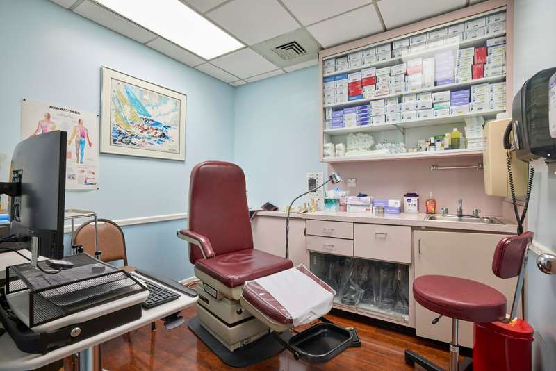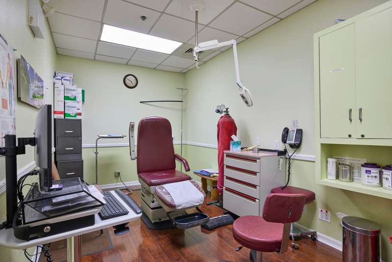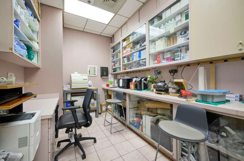 The layout of approximately 1800 square feet is configured as a medical office featuring a large waiting and reception area with ample administrative space, one consultation room, four exam rooms, a large staff room, three restroom and ample IT and storage closets.