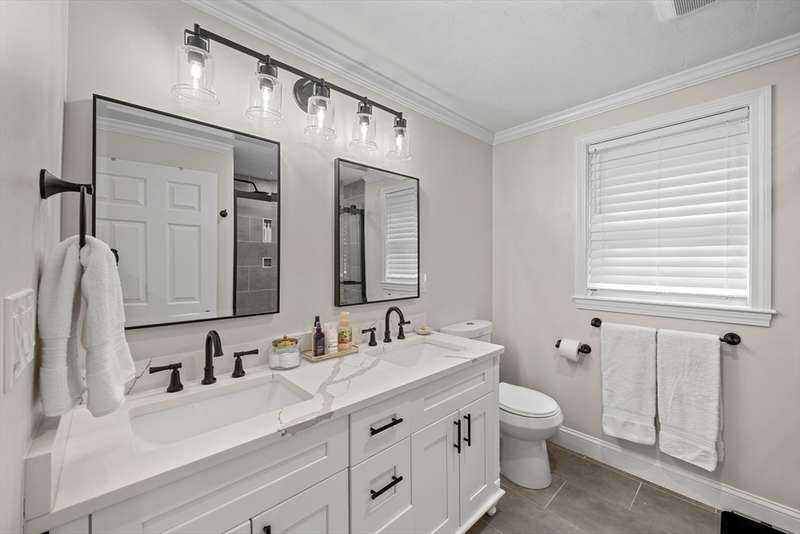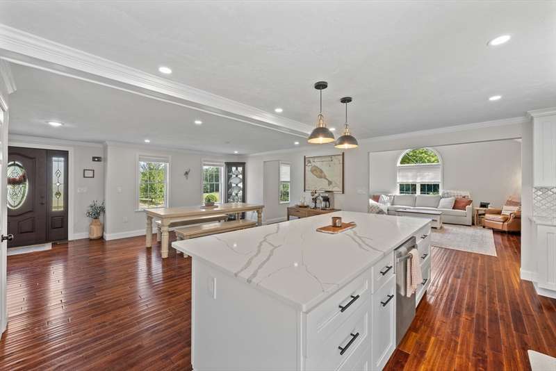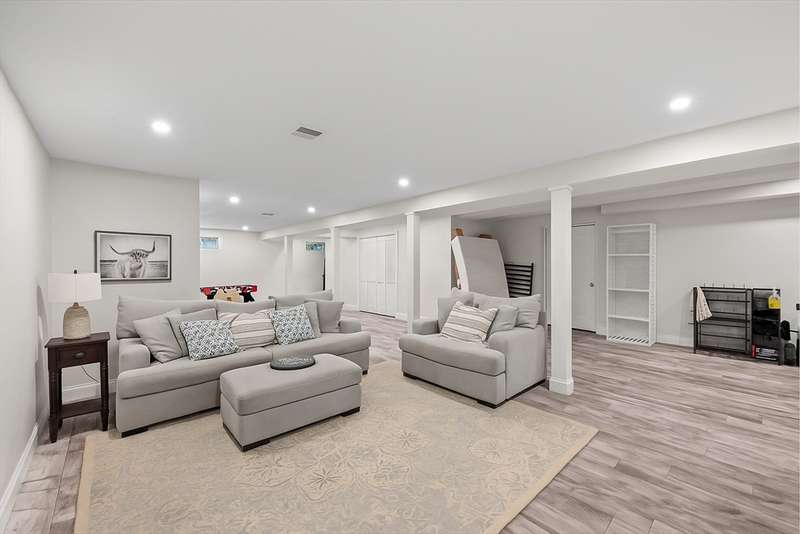 Home for the Holidays! This absolutely stunning home will have you from the second you step through the door. The open-concept floor plan boasts freshly refinished hardwood floors, elegant wainscoting, and sophisticated crown molding throughout. The chef’s kitchen is a showstopper, with a custom backsplash, pendant lighting, gas stove, a 9-foot center island, & gorgeous quartz countertops. Convenient half bath on the 1st floor tastefully designed w/ shiplap & includes washer & dryer. The second floor has 3 generously-sized bedrooms - one being the main suite which is a true retreat with double quartz-topped sinks, a custom shower, and walk-in closet. The sun-filled 4th bedroom is smaller but perfect as a home office, nursery, workout room, bonus space etc. An additional 1000+ sq ft in the basement is perfect for a game room, home theater, gym, you name it! Complete the tour outside with a composite deck, 1.27 acres of private land + an add’l 2-car detached garage.