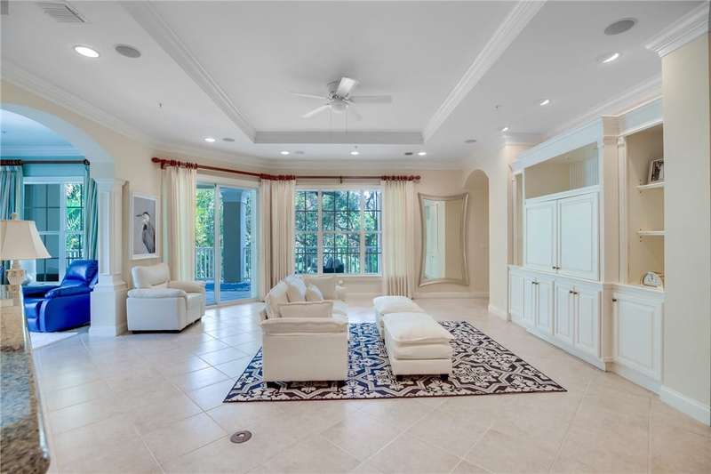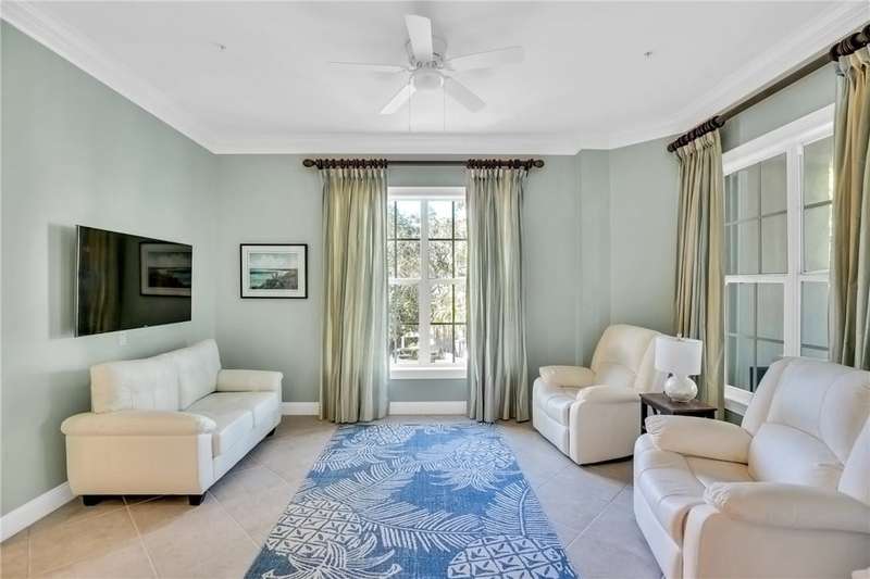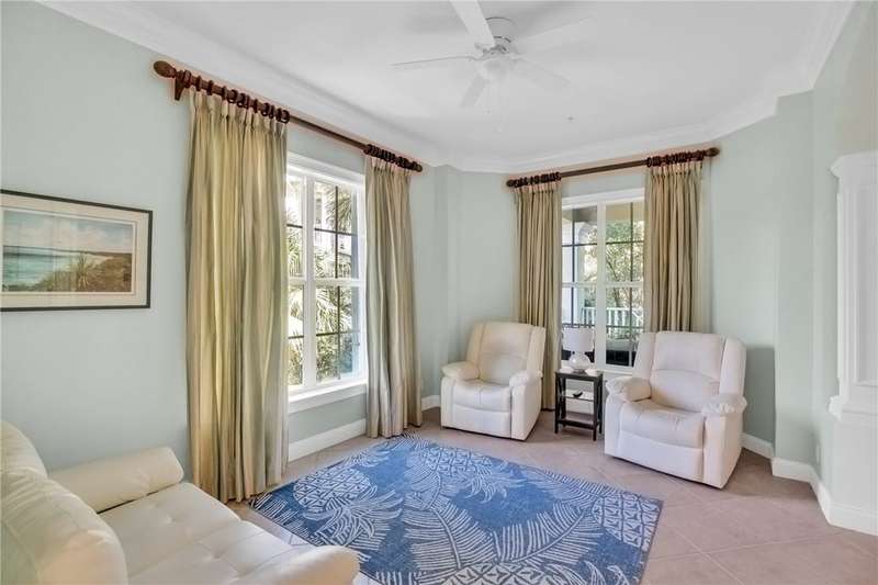 This spacious 3-bedroom, 3-bath, plus office/den condominium offers over 3,000 sq feet of refined living space, featuring impact-resistant windows/doors, ample outdoor covered patio space, extensive woodwork throughout and a 2 car air conditioned garage. Palm Island Plantation is a peaceful 58-acre community on Veros barrier island, designed in the timeless British West Indies style. This beautifully landscaped enclave offers an array of residences and top tier amenities, including two swimming pools, a fitness center, private docks, and a charming oceanfront clubhouse. Rmsizapprox/sub2err.