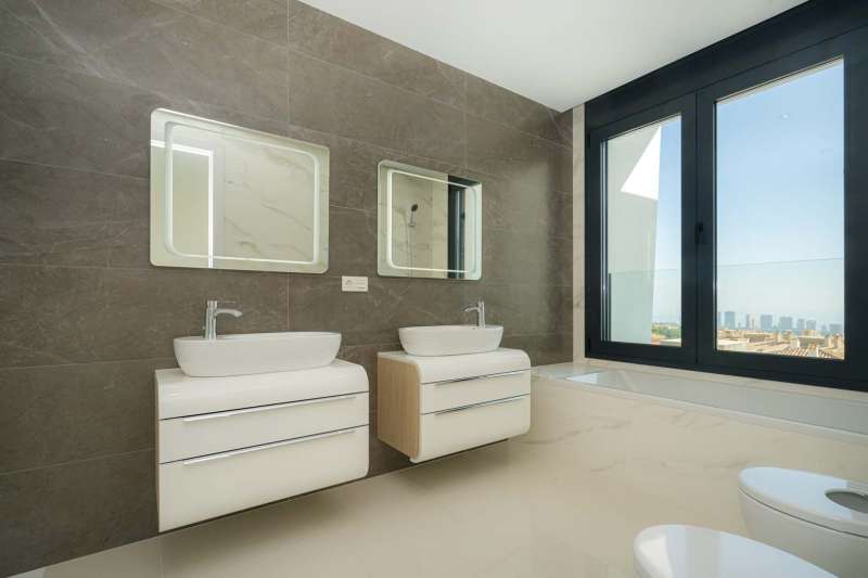 Finestrat rests as a serene coastal enclave, offering a peaceful respite. Within a mere 5 minutes drive from the villas for sale In Finestrat lies a plethora of conveniences, including supermarkets, schools, dining establishments, a sprawling shopping hub, and access to golf courses. Venture just ten minutes further, and the treasures of quality beaches, medical facilities, the heart of Benidorm, and its vibrant marina await. Benidorm presents an array of leisure choices, sure to captivate every desire. With a seamless connection via the AP-7 motorway, Alicante Airport is a convenient 40-minute journey from Finestrat.