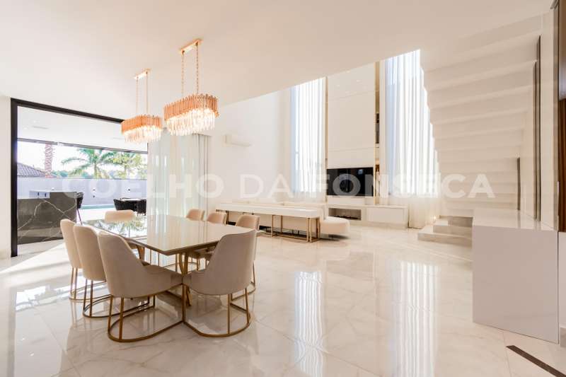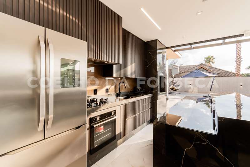 Casa moderna, living integrado, piscina, excelentes suítes, ar-condicionado, porcelanato, área gourmet completa, dependência de empregada, escritório, sala íntima. O condomínio possui dois lindos lagos e uma alameda tranquila.