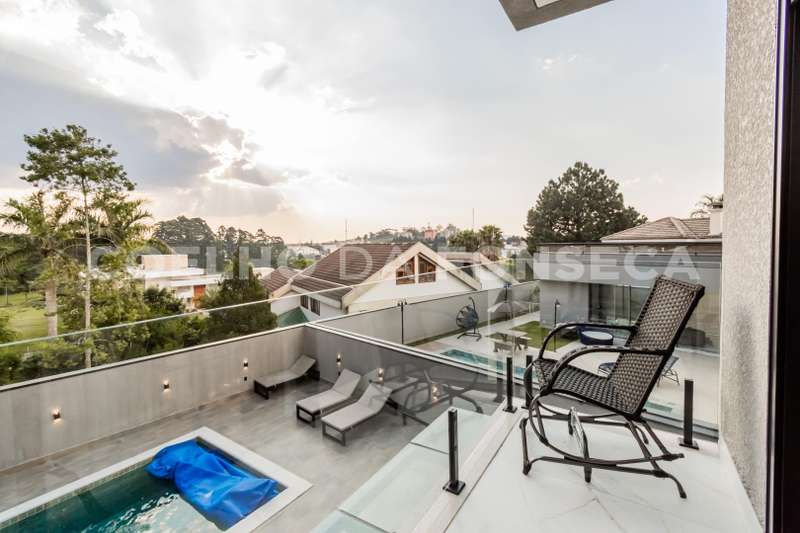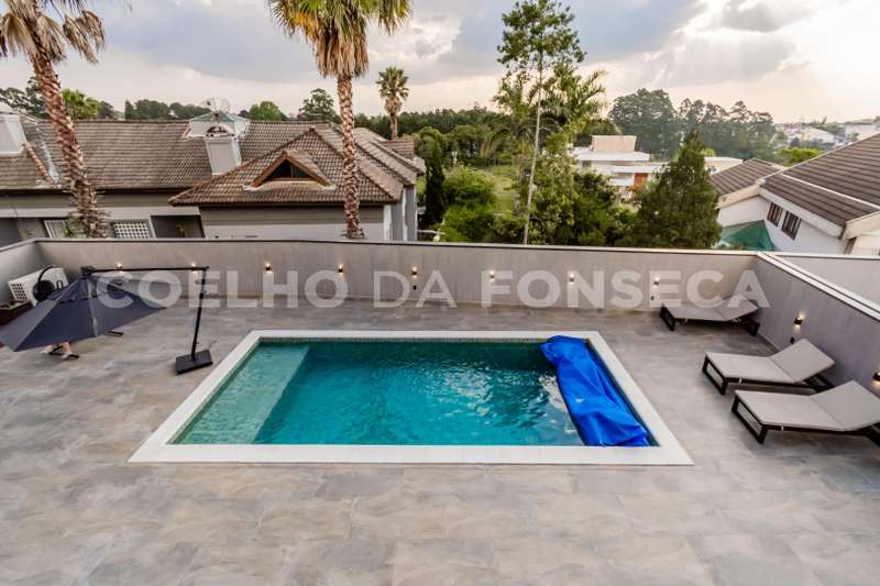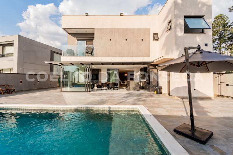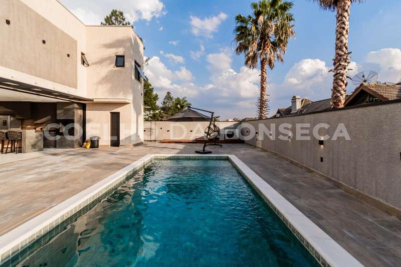 Casa em Condomínio no bairro Aldeia da Serra com 420m² área construída, 4 dormitório(s), 4 suíte(s), 6 vaga(s), 4 banheiro(s), piscina, escritório, ar condicionado, aquecedor solar.