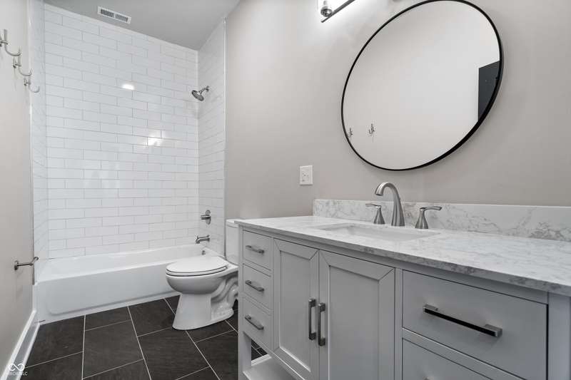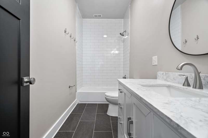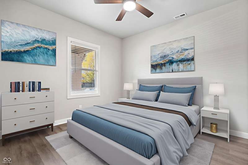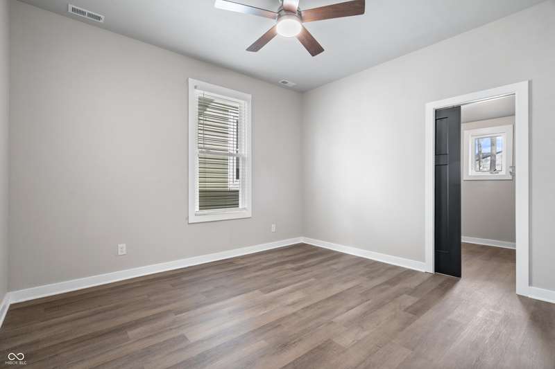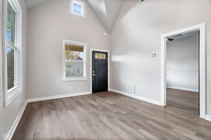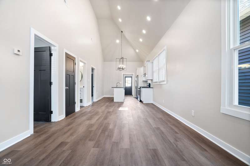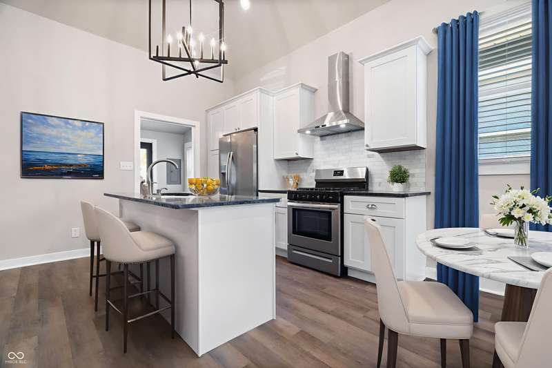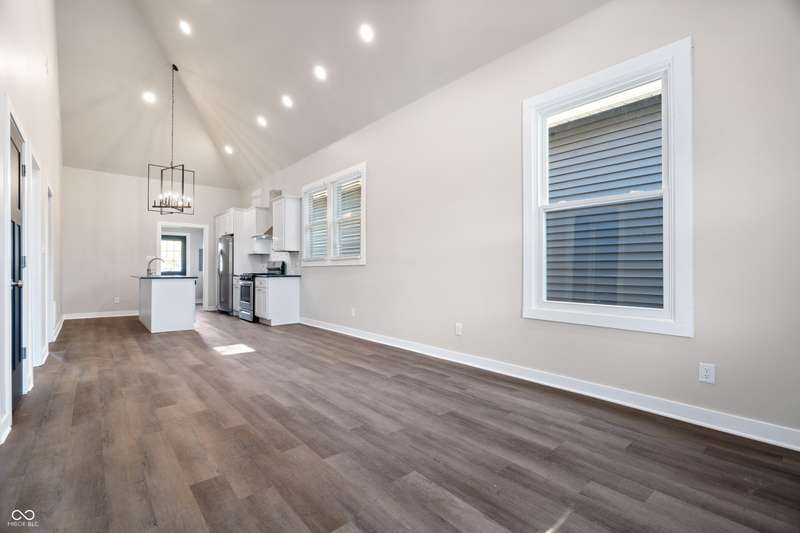 Enjoy the vaulted ceilings in this renovated historic home on Indy's South Side, close to Fountain Square, Garfield Park, and Pleasant Run Trail. Inside you will find open living space and a brand new kitchen with upgraded soft close cabinetry, granite tops, tile backsplash and a center island with breakfast bar. Stainless steel appliances included. The Primary Bedrooms features a large walk-in closet. Ceiling fans in both bedrooms. And a separate laundry room on the main level. New flooring and fresh paint. 8 new windows. New AC and water heater. Covered front porch, back patio, fenced backyard, a parking area and a new fire pit. Get in just in time for the holidays!