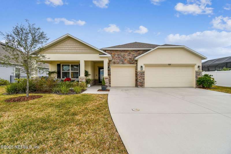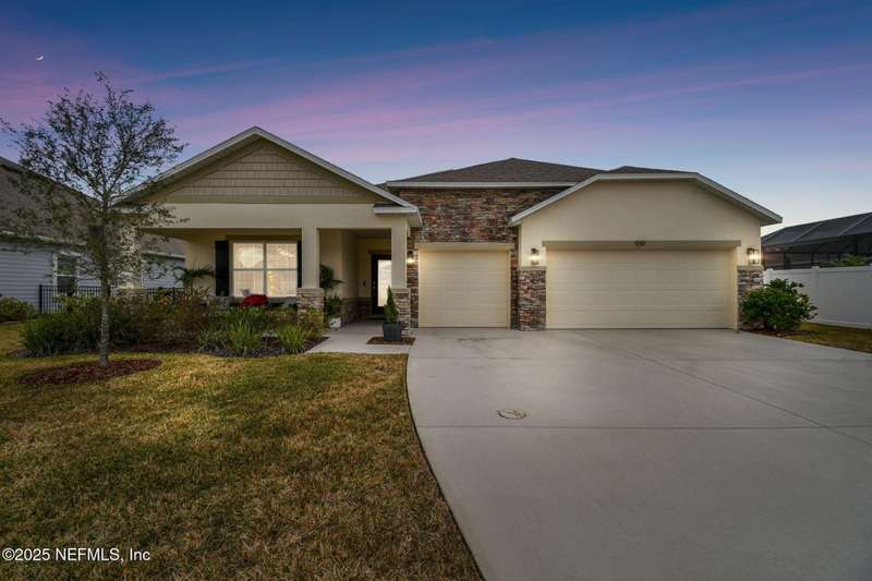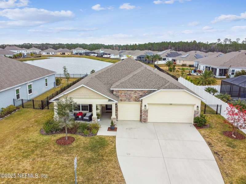 No CDD fees , low HOA . Call to schedule your appt today !Stunning 3 Bedroom + Den Lakefront Home | 3-Car Garage | 7 Miles to St. Augustine Beach - No Flood Zone! Welcome toy our dream home in one of St. Augustine's most sought-after communities! This concrete block construction home offers 3spacious bedrooms, a versatile den (perfect for a home office or guest room), and a rare 3-car garage-ideal for extra storage or your Florida toys. Enjoy breathtaking lake views from your open-concept living and dining area, featuring soaring ceilings and abundant natural light. The modern open floorplan is perfect for entertaining, with seamless flow from kitchen to living space. Located just a few miles from St. Augustine Beach, this home combines coastal convenience with peace of mind .Enjoy resort-style living in an active community with a sparkling pool, playground. Lakefront lot Flood zone X Just 7 miles to local Crescent Beach but not in a flood Zone ! Community Pool and County Playground . Seller will consider owner finance with minimum 20% down , balloon in 3-5 years .