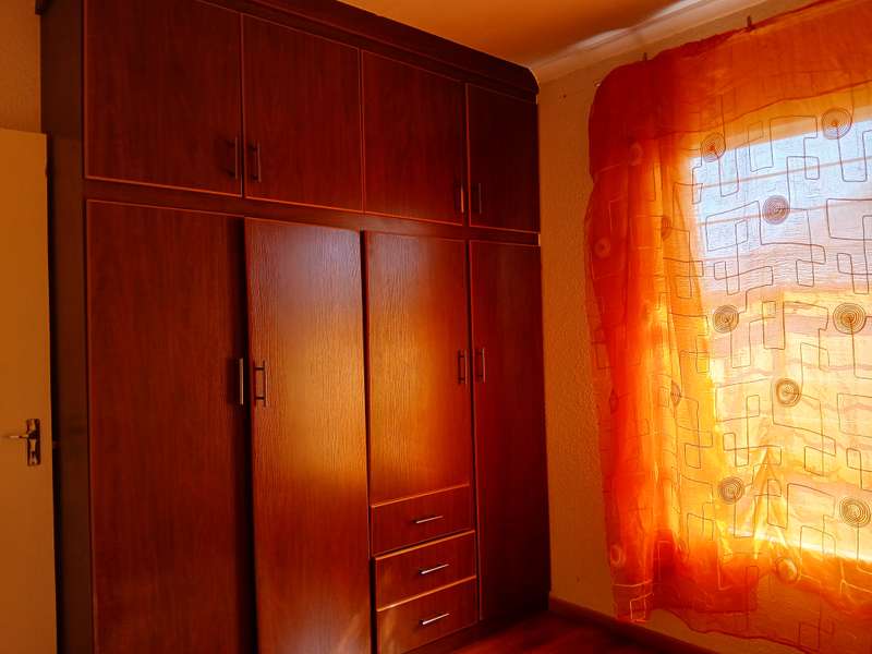 Welcome to this cozy 2-bedroom house, nestled in a quiet complex. This delightful home is perfect for a small family or couple. The house features two bedrooms with beautiful laminated floors, with the main bedroom boasting built-in cupboards for ample storage. The single bathroom is well-appointed and conveniently located to serve both bedrooms. The cozy kitchen is designed for efficiency and opens into a tiled living area This property also includes a spacious yard, single carport and secure parking. The property is surrounded by a sturdy wall with devil's forks, Don't miss the opportunity to make this charming house your new home.