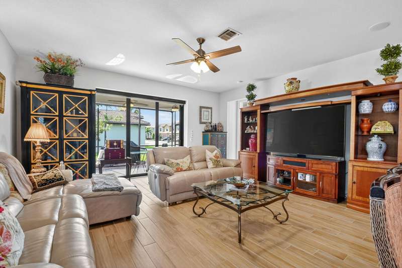 Meticulous 3 bedroom 2 bath home corner lot at the Fields in Lake Worth. SOLD FURNISHED OR UNFURNISHED! Interior upgrades feature natural gas stove, clothes dryer, & a gas tank-less water heater for on demand service. The kitchen features quality stainless KitchenAid appliances, granite counters & 42 inch wood cabinets & walk in pantry. Interior amenities offer wood plank tile floors in all rooms, volume ceilings, 8 ft doors, & plantation window shutters, .Screened patio w/ fully retractable 3 section sliding doors. Security system includes & a SONOS smart home system. features impact windows, sliding doors, & garage door . A whole house generator for secure power.. benefit from a 2 car paver driveway & stone fascia front for elegance. Two resort style clubhouse for your enjoyment