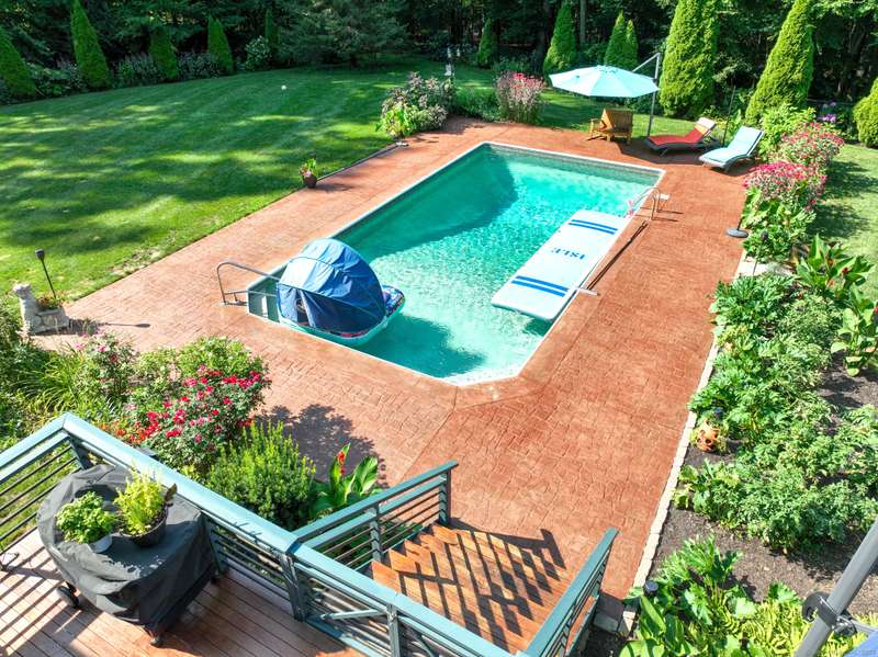 Exceptional Home with Designer Kitchen, Heated Pool & Private Pond Access This stunning residence offers a first floor designed for both entertaining and everyday living. The open floor plan features a chef's dream kitchen, a spacious living room with fireplace, and a formal dining room that opens onto a deck - perfect for hosting gatherings. An additional deck off the kitchen showcases premium Brazilian IPE decking. A first-floor office provides an ideal workspace. Upstairs, you'll find three generous bedrooms, a convenient laundry room, and an incredible bonus room over the three-car garage - currently outfitted as a gym. Additional space with separate entrance and half bath was previously used as a recording studio would make a great in-law or private office space. The outdoor living spaces are equally impressive, featuring an inground heated pool, expansive patio, and lush, abundant gardens. A fenced area keeps pets safe, while partial pond ownership offers a serene retreat. The