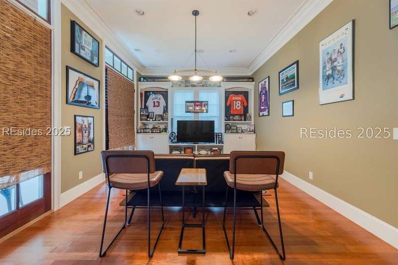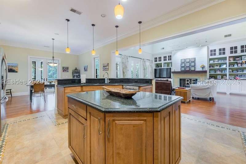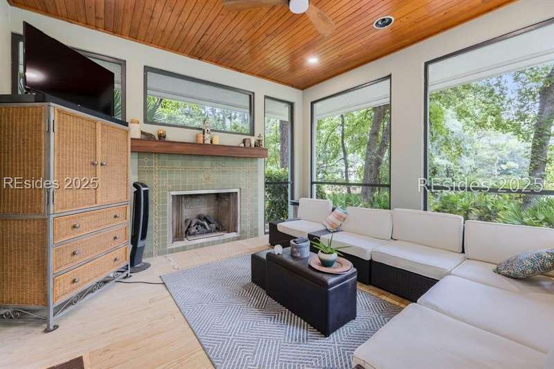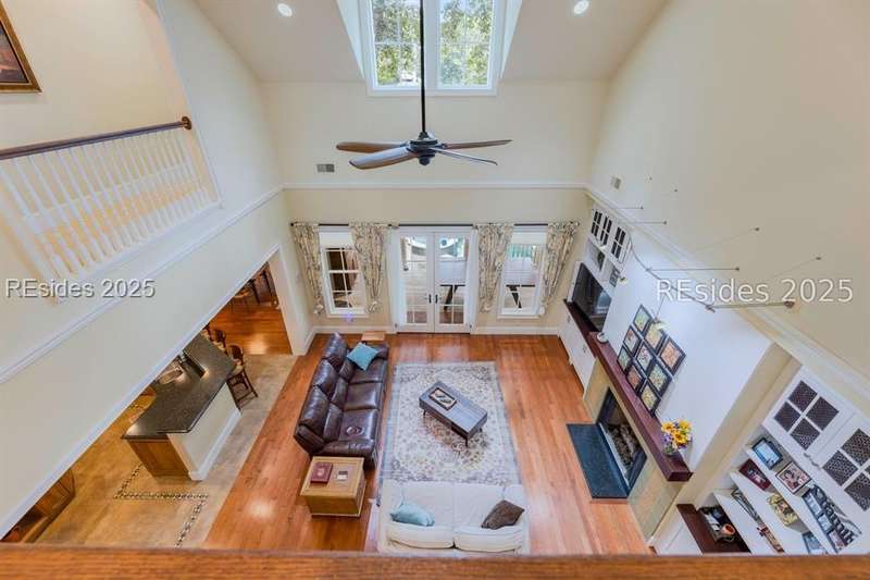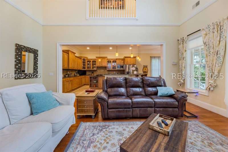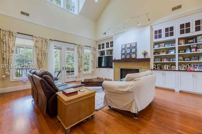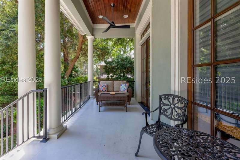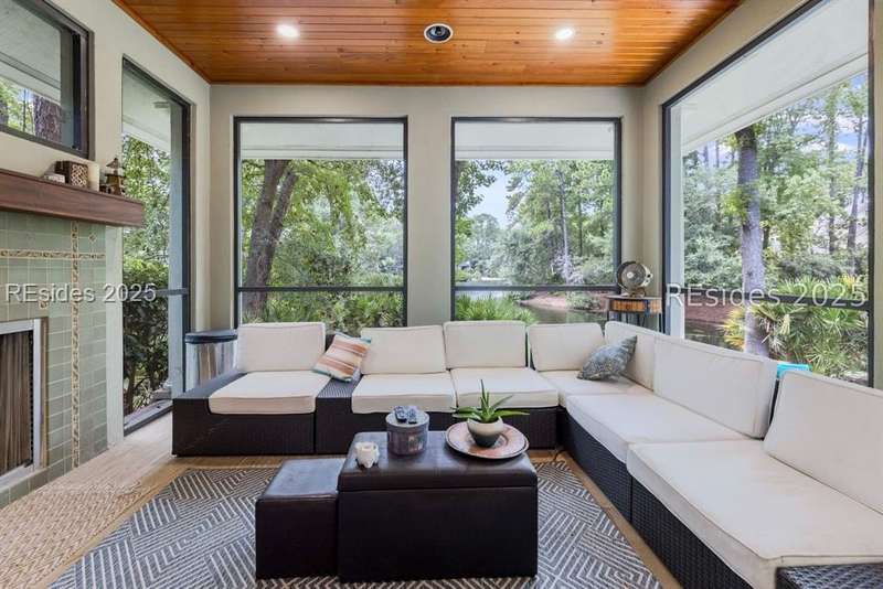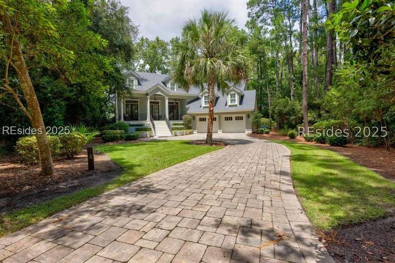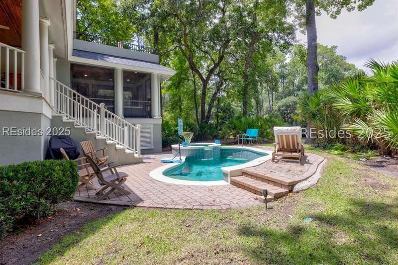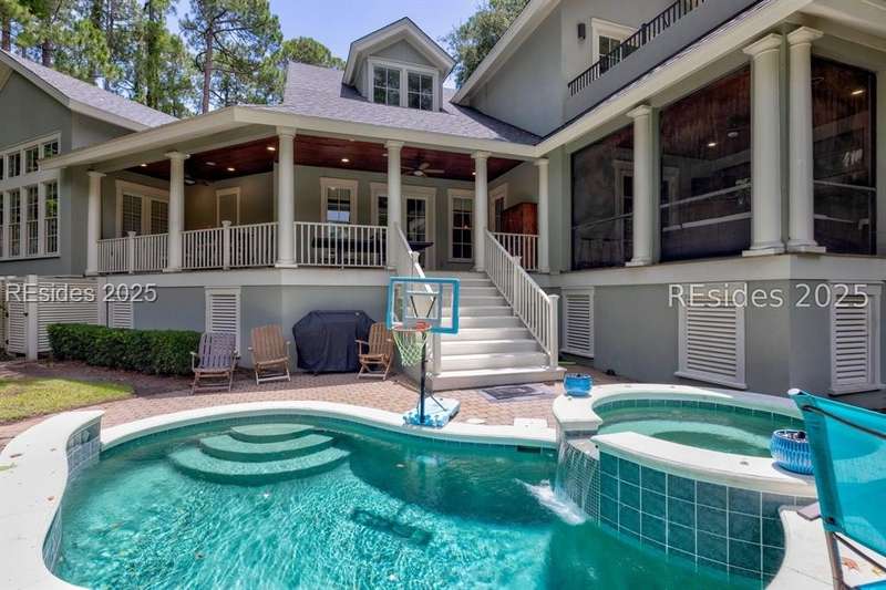 Beautiful Long Cove home with swimming pool & spa. This well-maintained home features 4-bedrooms, 3 1/2 baths, an office/study, screened porch w/ gas fireplace, covered front & rear porches, two-car garage and long-lagoon views. Other features include beautiful wood and tile floors, quartz countertops, stainless steel appliances, two-story ceilings in the living room, walk-in closets, ample storage space, and an upstairs balcony. Located on a quiet cul-de-sac street in the heart of Long Cove Club.