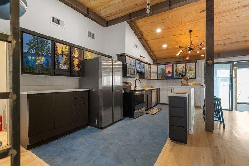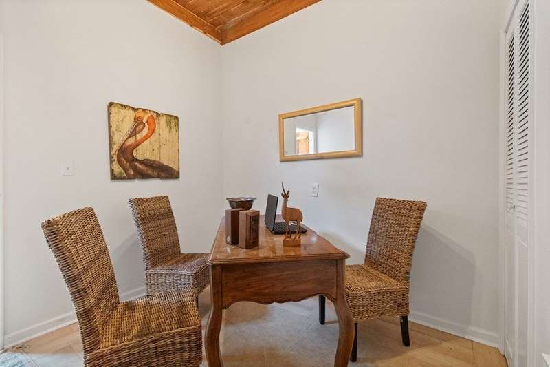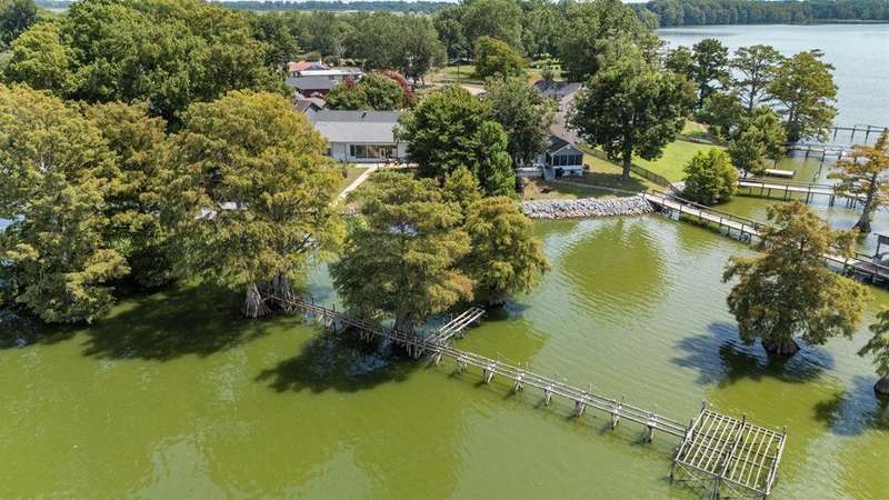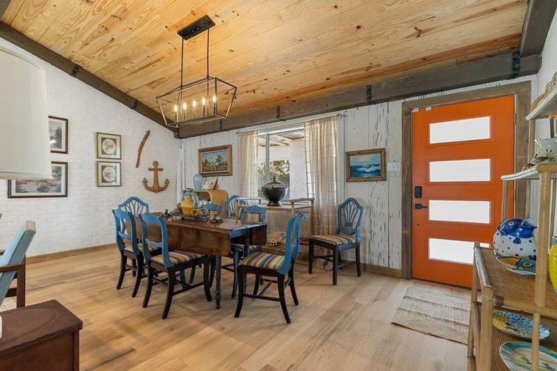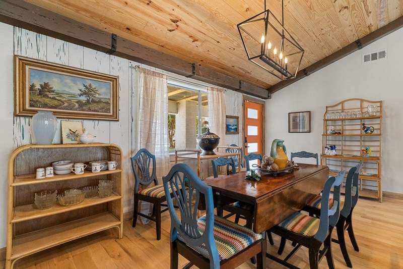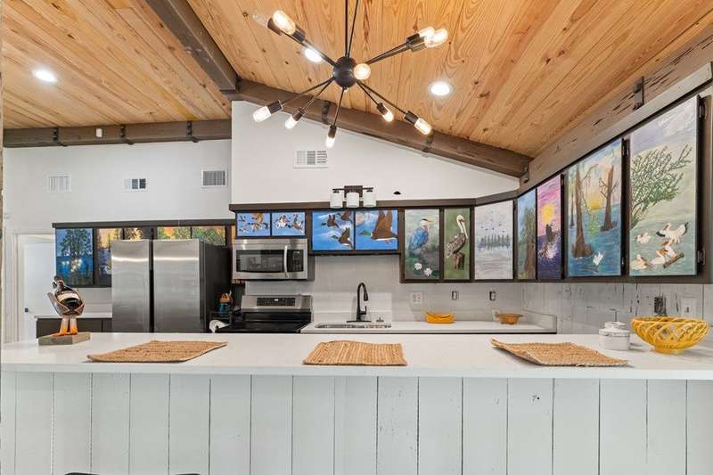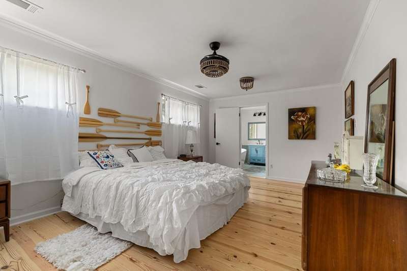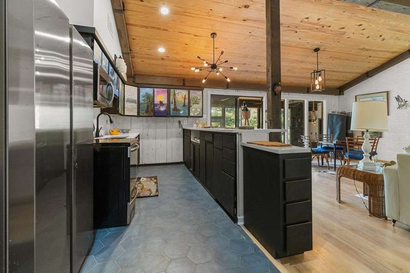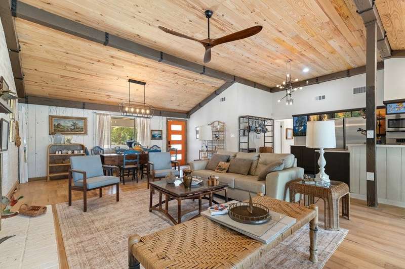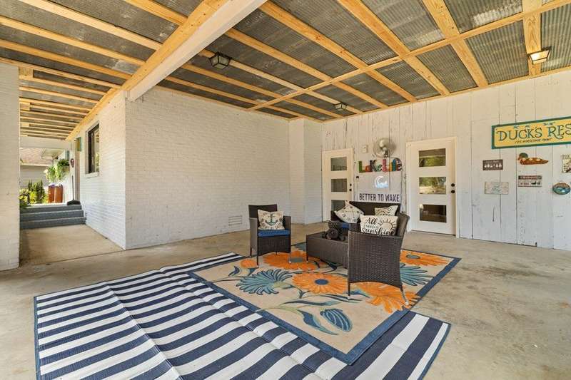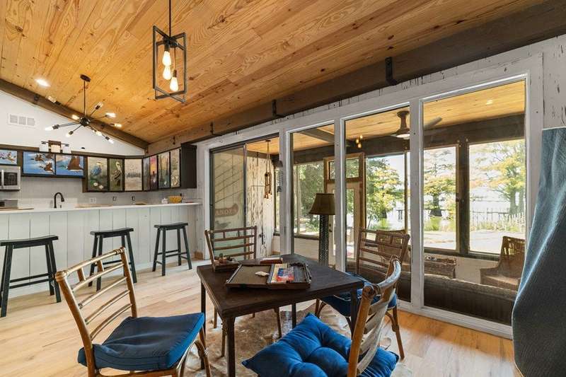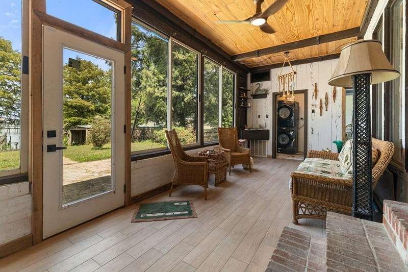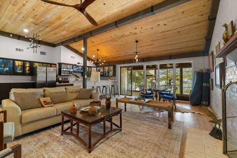 Discover your ideal lakefront home on Horseshoe Lake with 174 feet of shoreline. This renovated property features five bedrooms, three with hardwood floors, one with a tile floor and pine ceiling, and a fifth bedroom boasting a bamboo floor and attached bath.The residence includes three fully renovated bathrooms and a laundry room equipped with a new stackable washer and dryer. Additional features include a point-of-use hot water heater and tile flooring throughout key areas.The great room, perfect for entertaining, showcases solid 5 oak floors, beams, and a pine vaulted ceiling. A sunroom with a pine ceiling and tile floors and an office with a cedar ceiling enhance the livable space. A versatile flex room can be used for various purposes, and ample attic storage is available.The exterior boasts a concrete driveway leading to a double carport, and a 10' Arizona Breeze Carport is included, ready for installation. A large metal storage building, installed in 2024, is ideal for outdoor gear storage, complemented by a shed for bicycles and lawn equipment. A spacious boat house offers convenient storage for watercraft. Both the house and boat house roofs were replaced in 2022. Enjoy city water and sewer, along with fiber optic internet, television, and telephone access. The kitchen impresses with refrigerator , induction range, (purchased in November 2023), a new sink, disposal, and dishwasher. Solid wood cabinets display commissioned art. Turn key property.