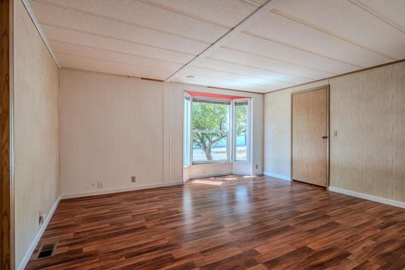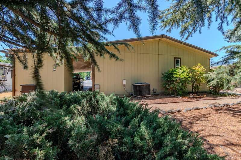 The split bedroom plan provides nice separation of space for the bedrooms. French doors lead into the primary bedroom with a bay window, large walk-in closet and ensuite bathroom. Laminate wood floors in the living area, primary bedroom and 2nd bedroom with carpet in the 3rd bedroom. The home is located toward the back of the park with mature trees in the back yard. The park offers a grassy park area for outdoor gathering or just relaxing. Tolman Creek Mobile Estates, an all ages park, provides affordable living in Ashland with easy access to shopping, restaurants and the YMCA.