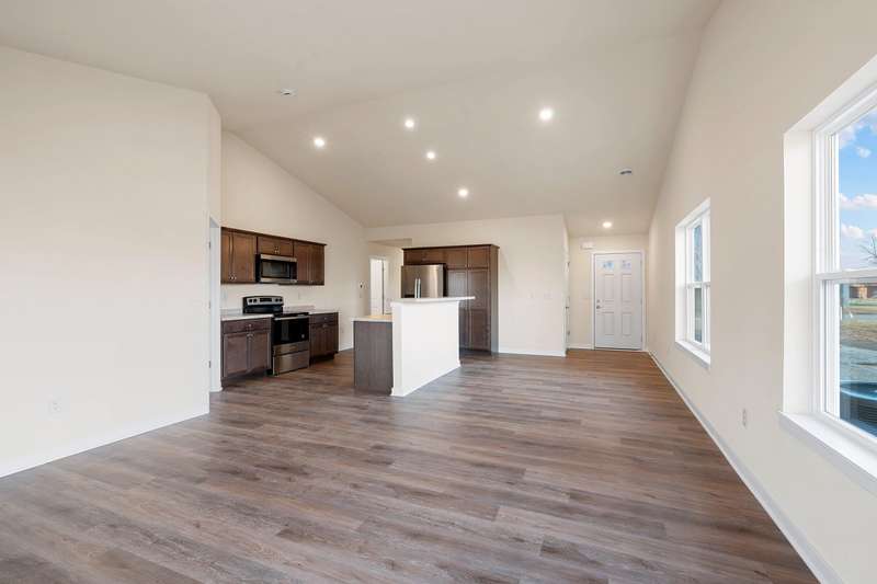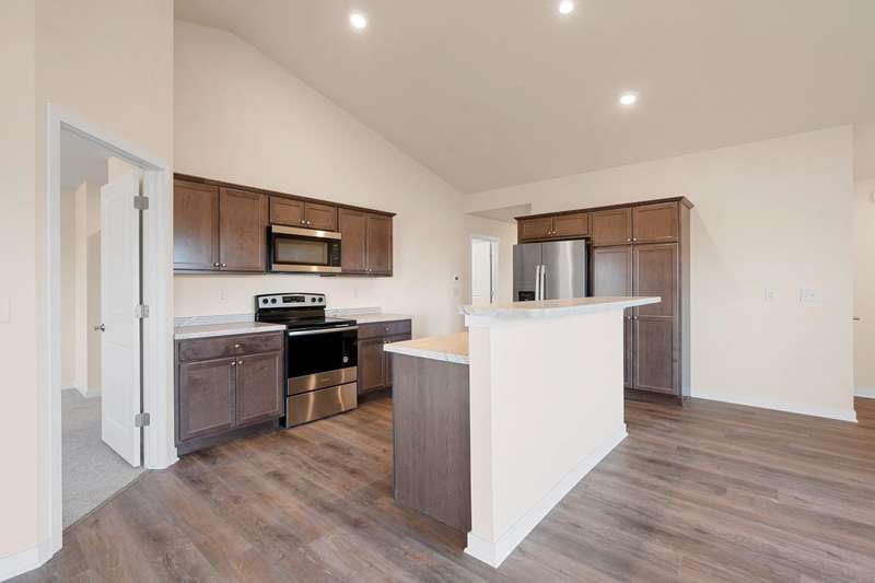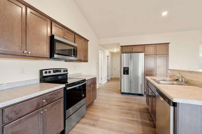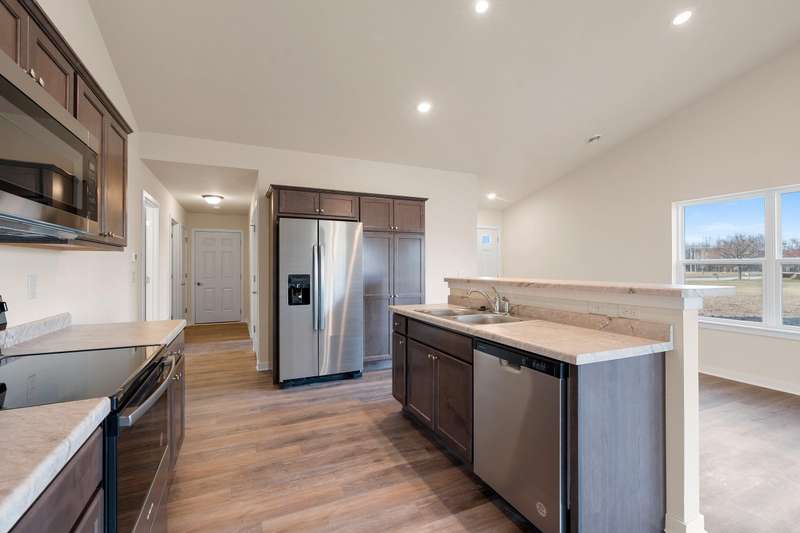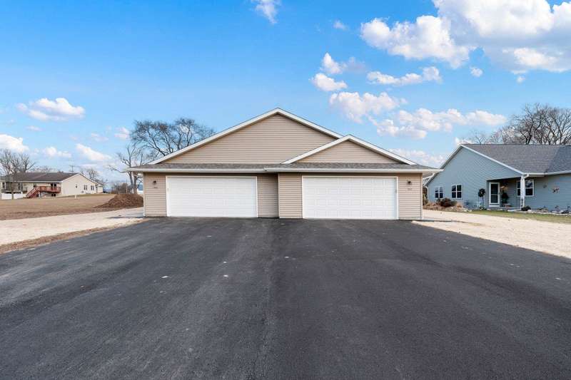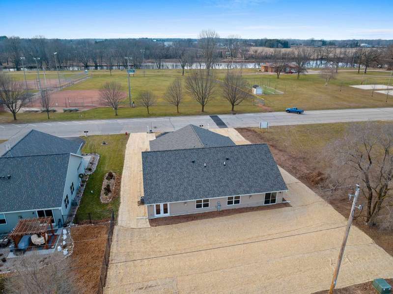 Directly across the street from the beautiful Riverside Park and Fox River, this bright, open concept condo is built for comfortable, peaceful indoor and outdoor living. The efficiency of the 2-bed 2-bath floor plan gives you the space you need to live comfortably, with all the modern finishes and appliances of new construction. Vaulted ceilings and a wide open kitchen and living room invite you in. The gas fireplace makes a beautiful, enticing living room centerpiece, especially on those chilly winter nights. Plenty of space for storage between the two bedrooms and attached 2-car garage.