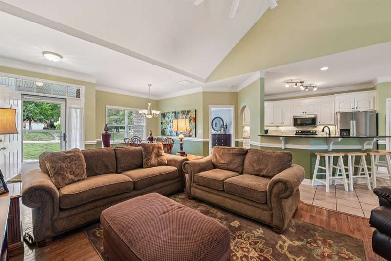 Tucked away on over an acre of wooded serenity, this full-brick stunner offers timeless style, thoughtful design, and the peaceful setting you've been dreaming of. Fruit trees add a splash of charm and seasonal delight, while the split-bedroom layout ensures both comfort and privacy. The heart of the home is the beautifully flowing kitchen?complete with under-cabinet lighting?that opens effortlessly to the dining area and great room for easy entertaining. Relax year-round on the screened porch or retreat to the spacious bonus room over the garage.With abundant floored attic storage, and an oversized two car garage Plus and rare separate 3rd garage that is just perfect for a golf cart, mower, or small car. This home delivers style, space, and functionality. Set in a community of large lots and towering trees, it's not just a home?it's your private retreat.