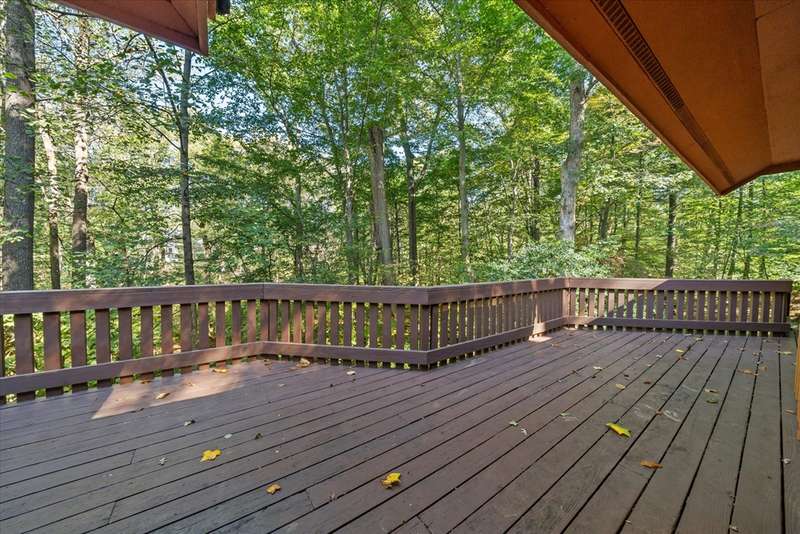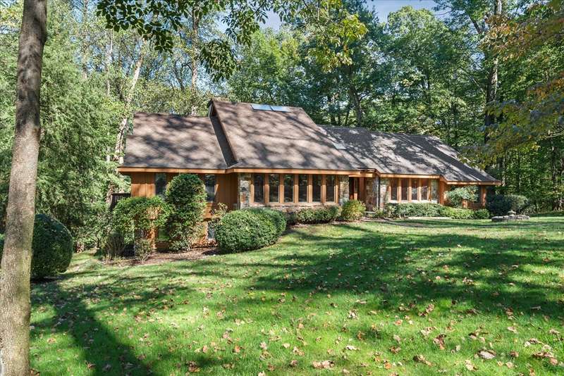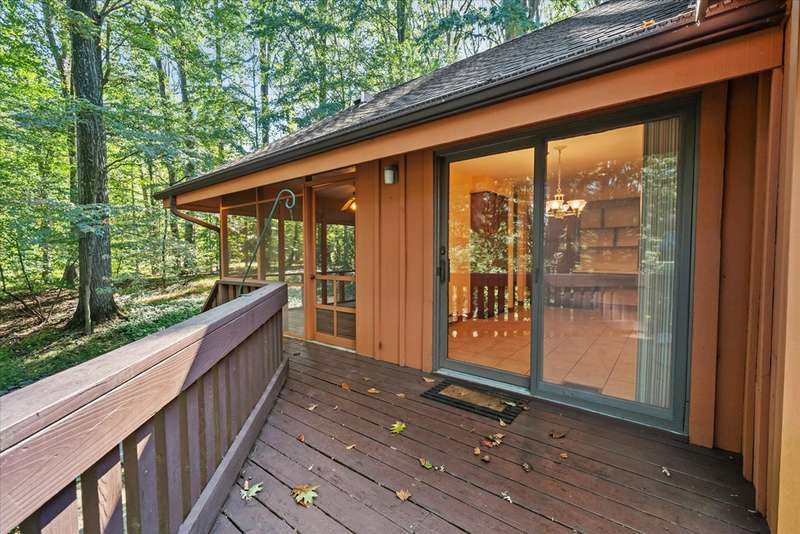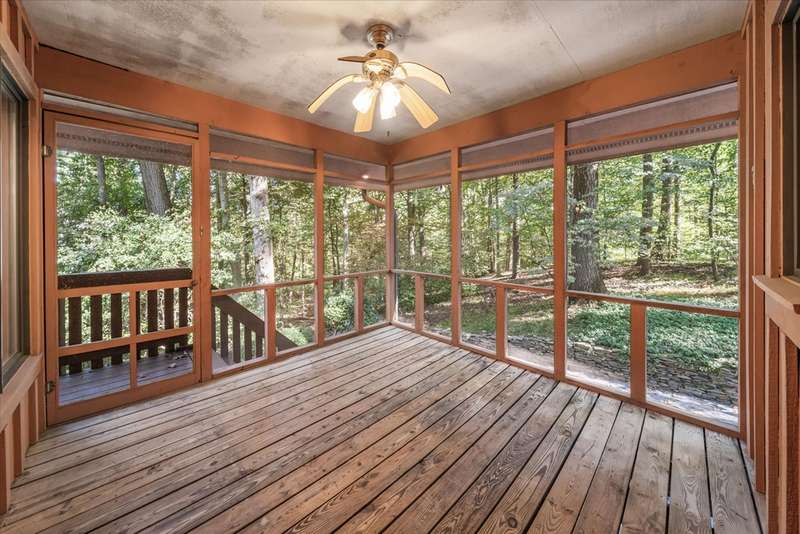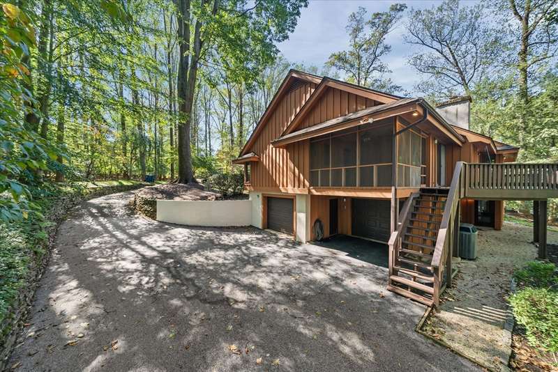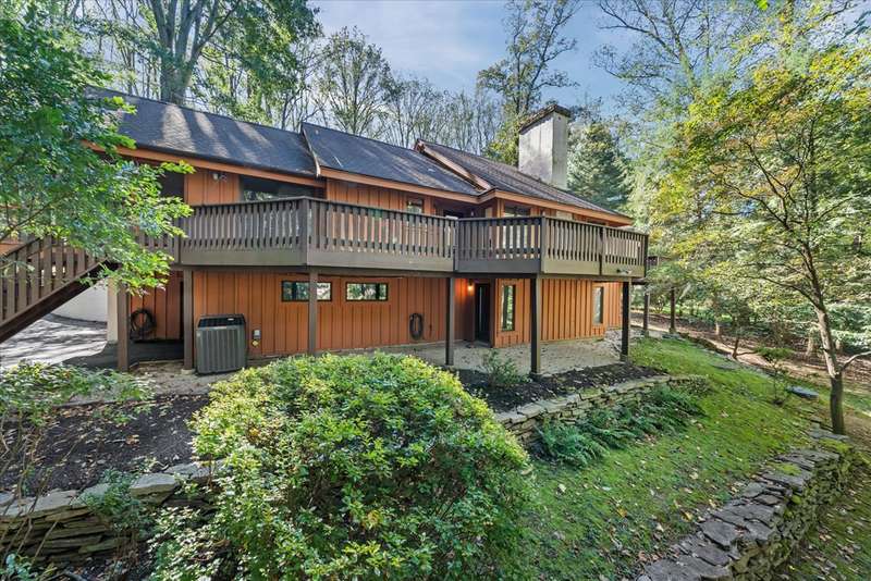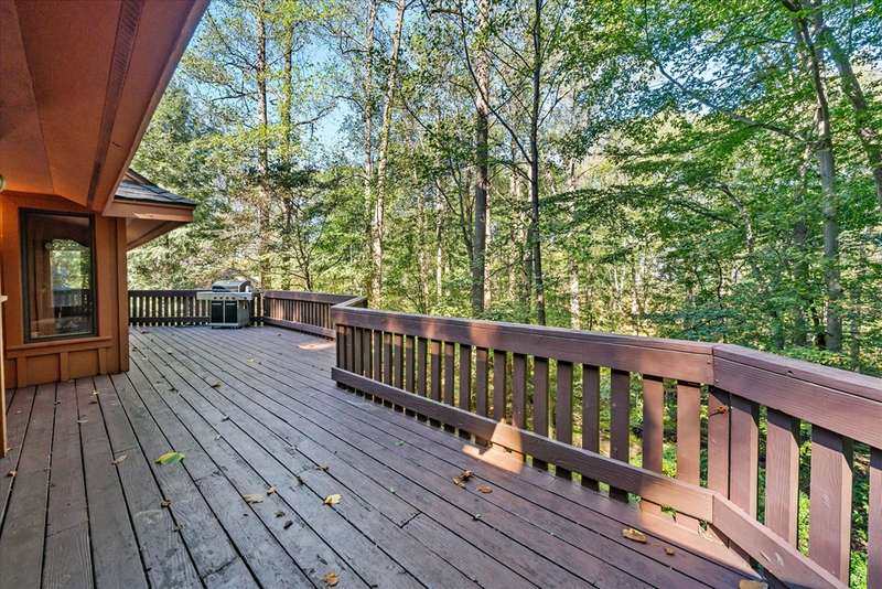 Nestled in the exclusive community of Quail Crossing, this exceptional custom-built contemporary residence is the first home completed in the neighborhood—crafted by renowned designers Hillcrest Associates and built by the esteemed John Lester Builders. Offering over 4,100 square feet of meticulously designed living space, this one-of-a-kind home is privately situated on a quiet, winding tree lined street, just a short walk to Centreville, with its charming shops and restaurants, and minutes from Greenville. This two-story architectural gem features three bedrooms, three and a half bathrooms, and stunning views from every room. The moment you step into the expansive, light-filled foyer—with its soaring ceilings and skylights—you are greeted by an open-concept layout that seamlessly connects formal and informal living spaces. Dramatic cathedral ceilings and walls of windows create a bright and airy atmosphere throughout the main level. The elegant foyer is flanked by a formal dining room on one side and a living room on the other, both offering beautiful natural light and scenic views. A striking floor-to-ceiling stone fireplace serves as the centerpiece of the cozy family room, while a stylish wet bar connects the space to the heart of the home: the kitchen. Updated with granite countertops, a large island with bar seating, and ample room for casual dining, the kitchen is both functional and welcoming—perfect for everyday living or entertaining. Adjacent to the kitchen, a screened-in porch invites you to enjoy alfresco dining surrounded by nature. Additional main level features include a powder room, laundry room, and access to the expansive rear deck that wraps around the home, offering tranquil views of the wooded backyard. Upstairs, the luxurious primary suite offers a private retreat with its own balcony, dual ensuite bathrooms, and two oversized custom walk-in closets—providing both comfort and convenience at every turn. The lower level adds tremendous versatility with two spacious bedrooms that share a full bathroom, along with a dedicated office featuring custom built-in wood cabinetry and a matching desk. This space also functions as a fourth bedroom, thanks to a custom-designed Murphy bed. Thoughtfully designed, impeccably maintained, and set in an ideal location, this remarkable home is ready for its next owner to move in and make it their own. Whether you're seeking quiet retreat or an entertainer’s dream, this property offers the perfect canvas to personalize and enjoy for years to come.
