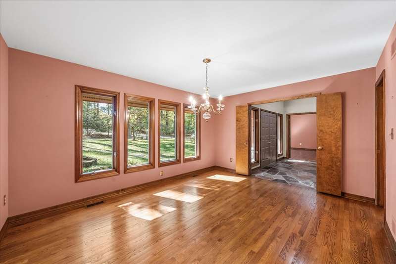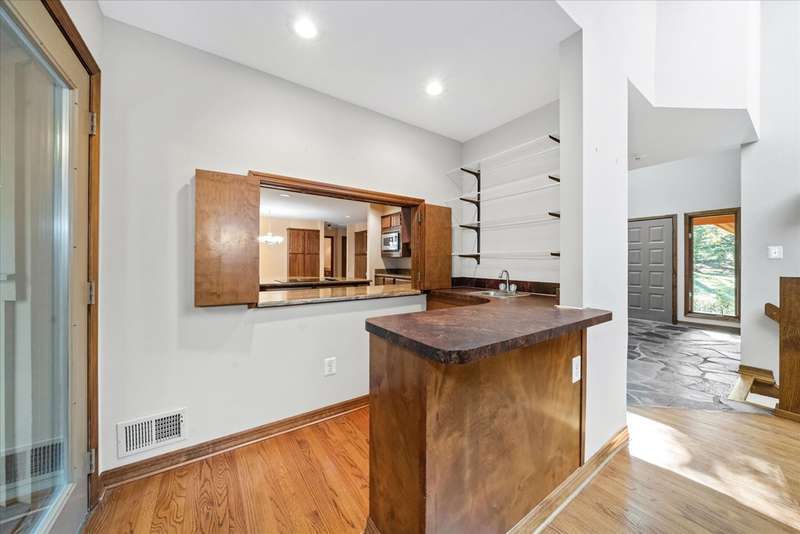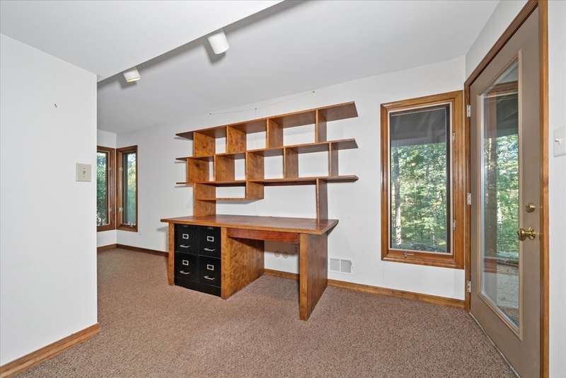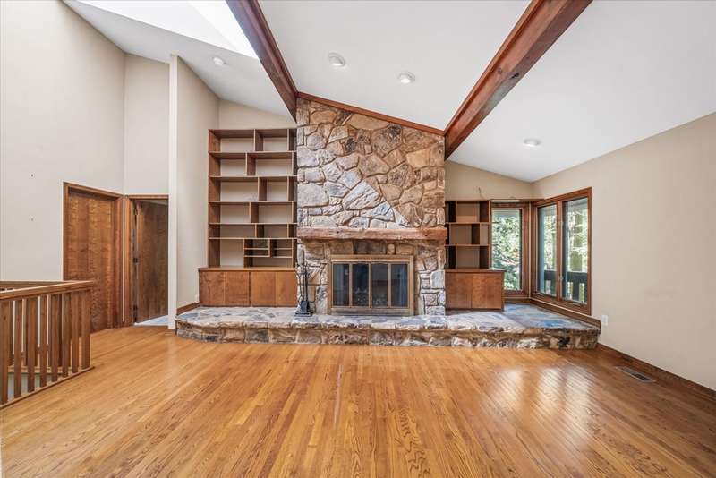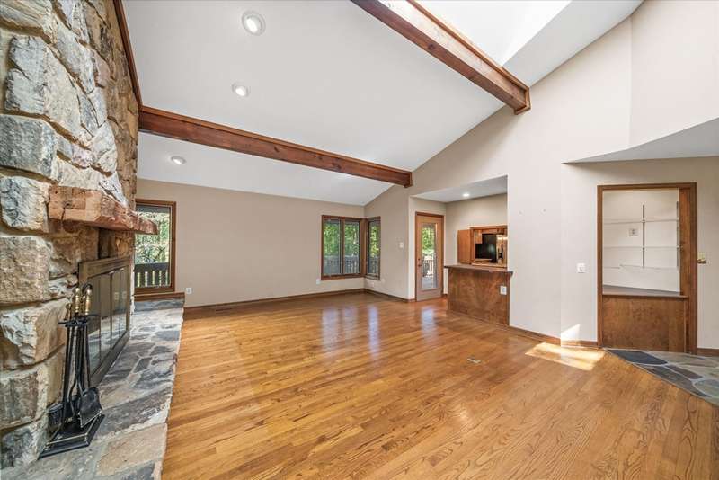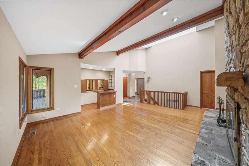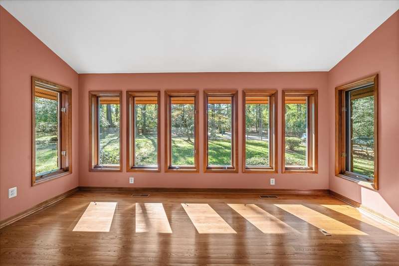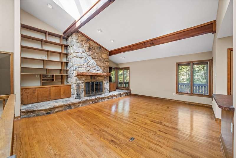 Nestled in the exclusive community of Quail Crossing, this exceptional custom-built contemporary residence is the first home completed in the neighborhood—crafted by renowned designers Hillcrest Associates and built by the esteemed John Lester Builders. Offering over 4,100 square feet of meticulously designed living space, this one-of-a-kind home is privately situated on a quiet, winding tree lined street, just a short walk to Centreville, with its charming shops and restaurants, and minutes from Greenville. This two-story architectural gem features three bedrooms, three and a half bathrooms, and stunning views from every room. The moment you step into the expansive, light-filled foyer—with its soaring ceilings and skylights—you are greeted by an open-concept layout that seamlessly connects formal and informal living spaces. Dramatic cathedral ceilings and walls of windows create a bright and airy atmosphere throughout the main level. The elegant foyer is flanked by a formal dining room on one side and a living room on the other, both offering beautiful natural light and scenic views. A striking floor-to-ceiling stone fireplace serves as the centerpiece of the cozy family room, while a stylish wet bar connects the space to the heart of the home: the kitchen. Updated with granite countertops, a large island with bar seating, and ample room for casual dining, the kitchen is both functional and welcoming—perfect for everyday living or entertaining. Adjacent to the kitchen, a screened-in porch invites you to enjoy alfresco dining surrounded by nature. Additional main level features include a powder room, laundry room, and access to the expansive rear deck that wraps around the home, offering tranquil views of the wooded backyard. Upstairs, the luxurious primary suite offers a private retreat with its own balcony, dual ensuite bathrooms, and two oversized custom walk-in closets—providing both comfort and convenience at every turn. The lower level adds tremendous versatility with two spacious bedrooms that share a full bathroom, along with a dedicated office featuring custom built-in wood cabinetry and a matching desk. This space also functions as a fourth bedroom, thanks to a custom-designed Murphy bed. Thoughtfully designed, impeccably maintained, and set in an ideal location, this remarkable home is ready for its next owner to move in and make it their own. Whether you're seeking quiet retreat or an entertainer’s dream, this property offers the perfect canvas to personalize and enjoy for years to come.