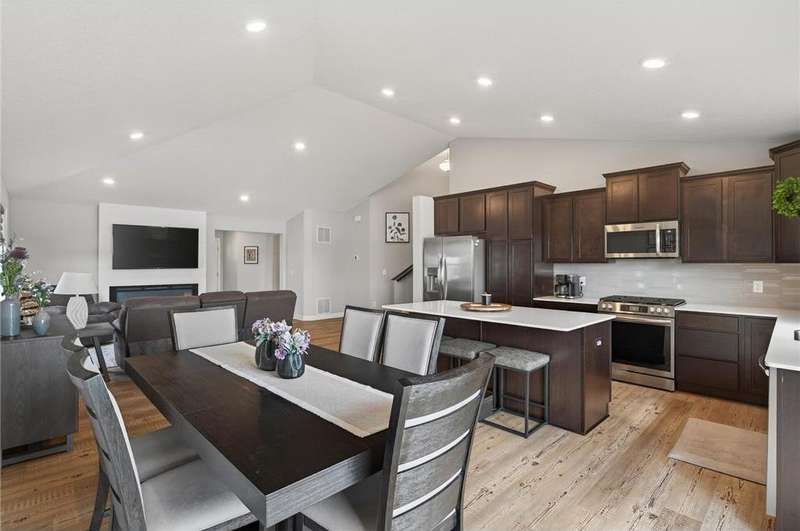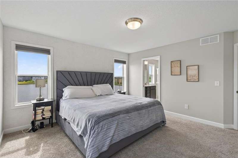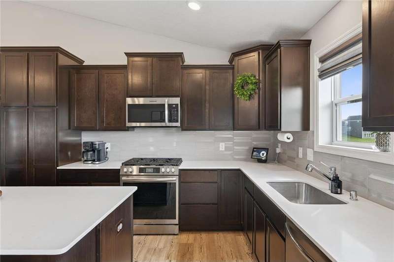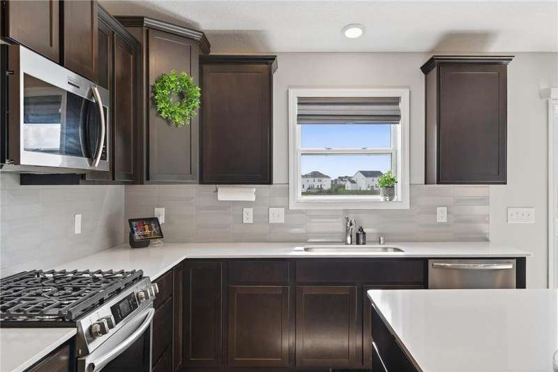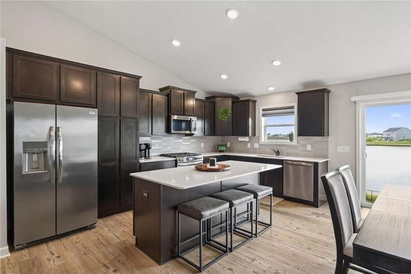 Shows like new with immediate availability-no waiting for construction! Enjoy beautiful pond views in this stunning 3 -level home located in the highly sought-after STMA school district. The open-concept main level features soaring ceilings, a stylish kitchen with solid-surface countertops, stainless appliances, and a generous island flowing into bright dining and living spaces-plus a convenient home office. Upstairs offers a spacious primary suite with walk-in closet and private bath, along with 2 additional bedrooms and full bath. The finished lower level boasts a walk-out family/media room, bedroom, full bath, and laundry, with bonus storage in the crawl space. Fantastic location close to schools, parks, shopping, dining, and major highways.