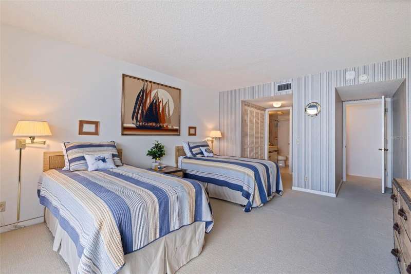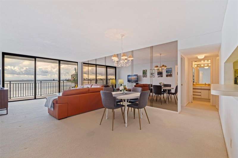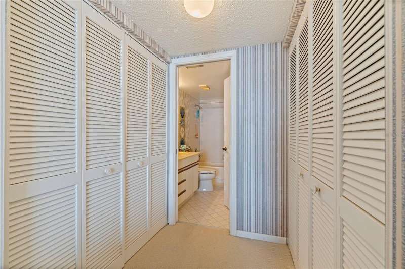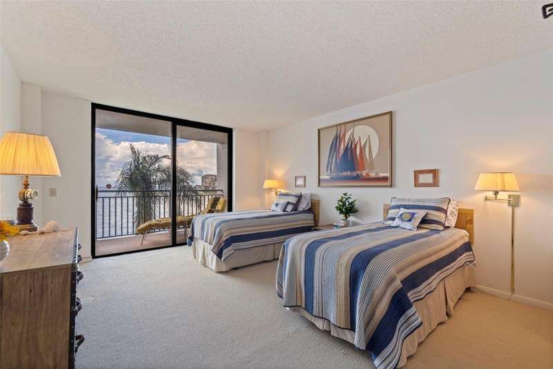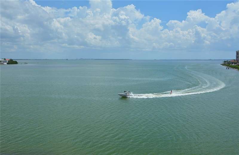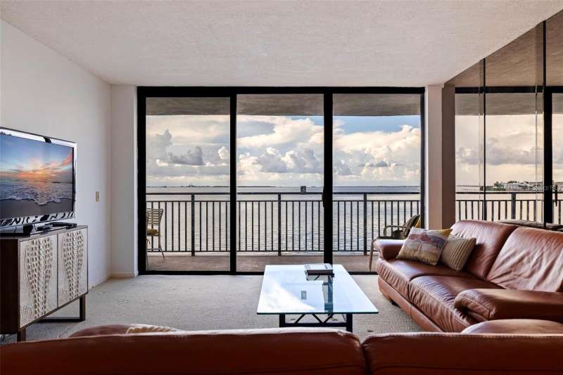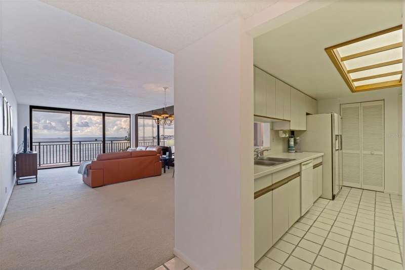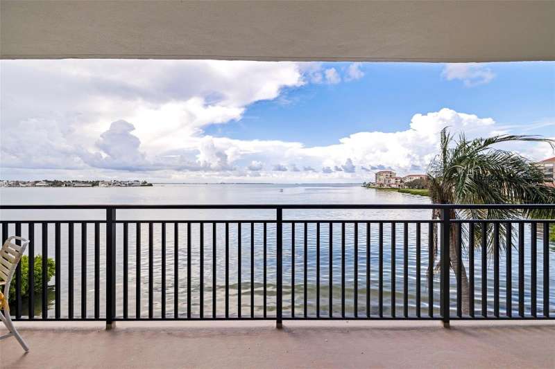 UNOBSTRUCTED VIEWS OF TAMPA BAY & THE SKYWAY BRIDGE from every room in this 3rd-floor 2BR/2BA condo in Vista de Oro at Playa Escondida, Isla del Sol’s premier waterfront community! From the moment you open the door, you are greeted with breathtaking panoramic vistas, a natural sanctuary with daily dolphins and manatee sightings. Spacious kitchen with eat-in area—spotless yet retro—ideal for a modern remodel. Pass-through window could easily open to a breakfast bar or island. Expansive living/dining area opens to a rare wraparound balcony spanning both bedrooms, perfect for entertaining. The split floor plan provides privacy with the primary suite featuring oversized walk-in closet, spacious original separate vanities, generous walk-in shower, and sweeping Tampa Bay views directly from your bed. Guest suite includes dual closets, full bath, and another wall to wall sliding door with balcony access. Laundry closet is conveniently located by the kitchen, new water heater, HVAC (2023). Assigned under-building covered parking plus guest parking. The community features resort-style amenities: new waterside pool with hot tub, gazebo, and a dream beach view. Perfect location if you decide to join the Isla Del Sol Yacht and Country Club and their golf course membership. Just 10 min to downtown St. Pete, 30 min to Tampa Int’l, close to Fort De Soto beaches. Quick elevator ride to your own private beach. Rare opportunity to create your dream waterfront home with the best views in Isla del Sol. Located in well maintained building which has completed its reserve study milestone report and all necessary repairs with assessments already paid.
