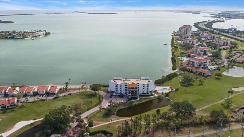 UNOBSTRUCTED VIEWS OF TAMPA BAY & THE SKYWAY BRIDGE from every room in this 3rd-floor 2BR/2BA condo in Vista de Oro at Playa Escondida, Isla del Sol’s premier waterfront community! From the moment you open the door, you are greeted with breathtaking panoramic vistas, a natural sanctuary with daily dolphins and manatee sightings. Spacious kitchen with eat-in area—spotless yet retro—ideal for a modern remodel. Pass-through window could easily open to a breakfast bar or island. Expansive living/dining area opens to a rare wraparound balcony spanning both bedrooms, perfect for entertaining. The split floor plan provides privacy with the primary suite featuring oversized walk-in closet, spacious original separate vanities, generous walk-in shower, and sweeping Tampa Bay views directly from your bed. Guest suite includes dual closets, full bath, and another wall to wall sliding door with balcony access. Laundry closet is conveniently located by the kitchen, new water heater, HVAC (2023). Assigned under-building covered parking plus guest parking. The community features resort-style amenities: new waterside pool with hot tub, gazebo, and private beach. Perfect location if you decide to join the Isla Del Sol Yacht and Country Club and their golf course membership. Just 10 min to downtown St. Pete, 30 min to Tampa Int’l, close to Fort De Soto beaches. Quick elevator ride to your own private beach. Rare opportunity to create your dream waterfront home with the best views in Isla del Sol. Located in well maintained building which has completed its reserve study milestone report and all necessary repairs with assessments already paid.