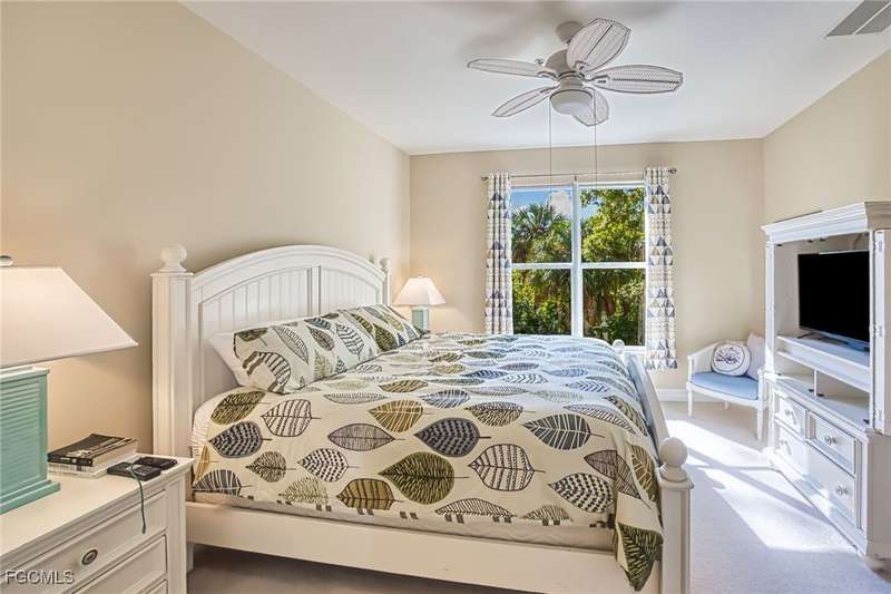 Welcome to this stunning, TURNKEY second-floor condo! NEW A/C AND WATER HEATER INSTALLED JULY 2025!! Enjoy a peaceful and private preserve view from your back lanai, creating the perfect serene retreat. This home has had no hurricane damage and is in an unbeatable location near Fort Myers Beach, Sanibel, golf courses, state parks, marinas, Lakes Park, Health Park Hospital, and Lakes Regional Library, all within walking distance. Located in a vibrant community packed with amenities, you'll have access to a resort-style heated pool, spa, BBQ picnic area, tennis courts, pickleball, dog park, social events, and more. Tortuga allows owners to rent out their properties up to 4 times per year with a minimum of 30 days. This spacious 1,529 sq. ft. home features 2 bedrooms plus a den, offering privacy and the flexibility to convert it into a third bedroom if desired. The vaulted ceilings and high ceiling fans create an open and airy feeling. The guest bedroom area is equipped with a pocket door for complete guest privacy from the rest of the condo. There is a deeded storage locker on the ground floor. New toilets were installed in 2024. The HOA covers insurance, cable, internet, irrigation, water, lawn maintenance, exterior pest control, and more, making for truly hassle-free living. Plus, the building was recently painted, adding to its fresh and well-maintained appeal in this quality gated community. Don't miss your chance to own this incredible condo-schedule your showing before it's gone!