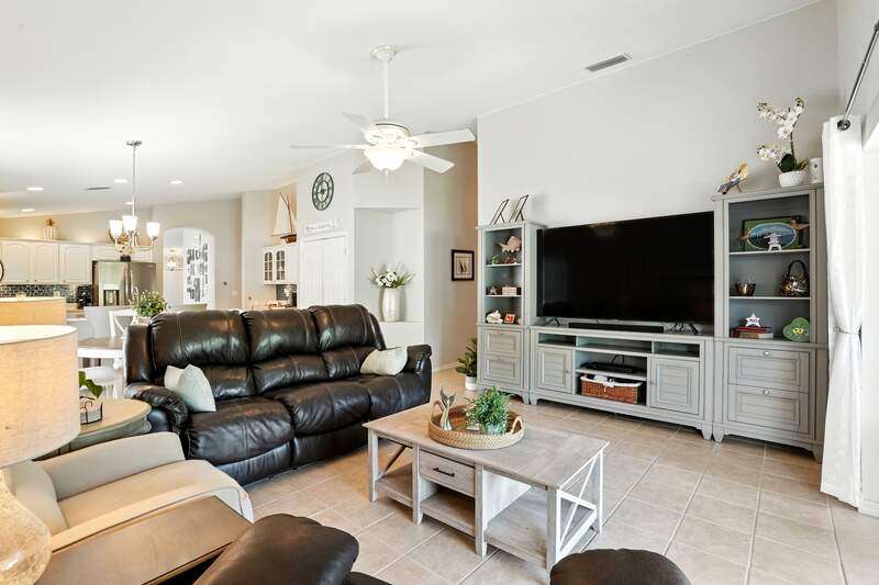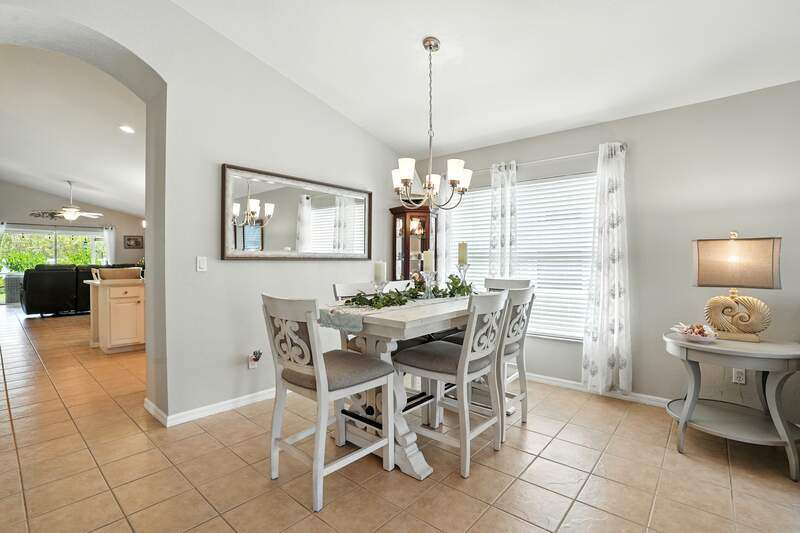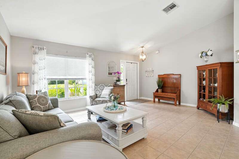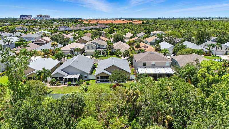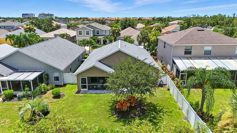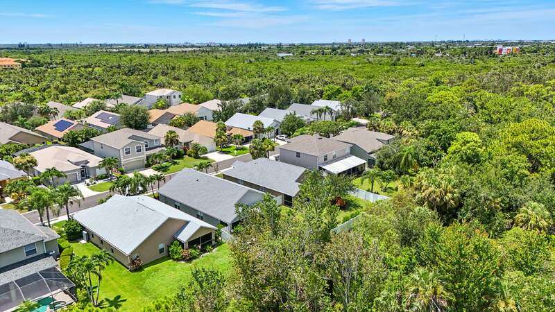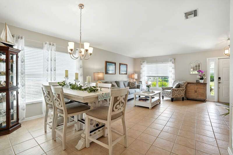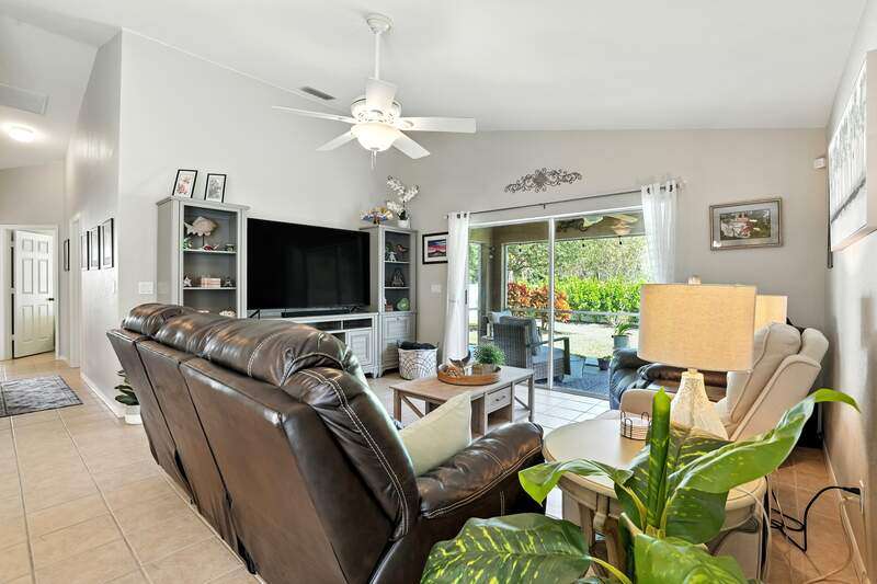 Wake up to serene preserve views in this thoughtfully updated 4-bedroom home nestled on the only secluded loop in the gated community of Gladiolus Preserve. Inside, soaring vaulted ceilings and abundant natural light fill nearly 2,000 sq. ft. of living space with a bright and airy ambiance. Two spacious living and dining areas provide the perfect setting for entertaining or relaxing, while the modern kitchen impresses with updated countertops, a tiled backsplash, breakfast bar, double-door pantry, and a built-in desk. The luxurious primary suite features premium vinyl plank flooring, a generous walk-in closet, and a spa-like ensuite bath with dual vanities, soaking tub, and separate walk-in shower. The versatile 4th bedroom adjoins the primary suite through elegant French doors, enabling it to effortlessly transform into a home office, wellness room, nursery, or cozy sitting area. Move right in and enjoy updated flooring (no carpet), new water heater and A/C compressor (2025), plus a newer roof and kitchen appliances (2022). Your private screened lanai and new paver patio invite you to unwind or entertain while overlooking the spacious backyard and tranquil preserve. Rest easy with low HOA fees, No CDD fees, and No history of flooding! Gladiolus Preserve offers residents a variety of amenities including a clubhouse, heated pool, fitness center, and playground. Ideally located in the heart of South Fort Myers, you'll be just minutes from Sanibel, Fort Myers Beach, Lakes Public Library, and both HealthPark and Golisano Children's Hospitals.