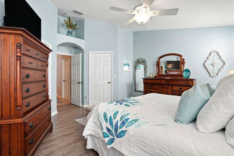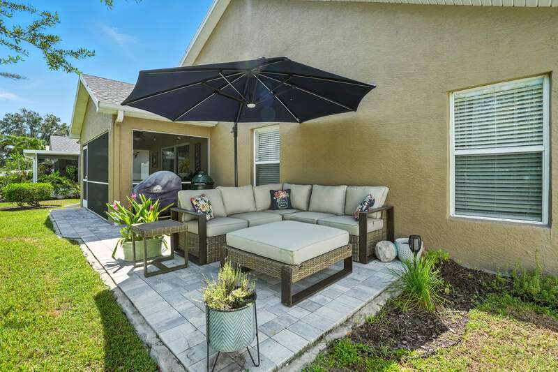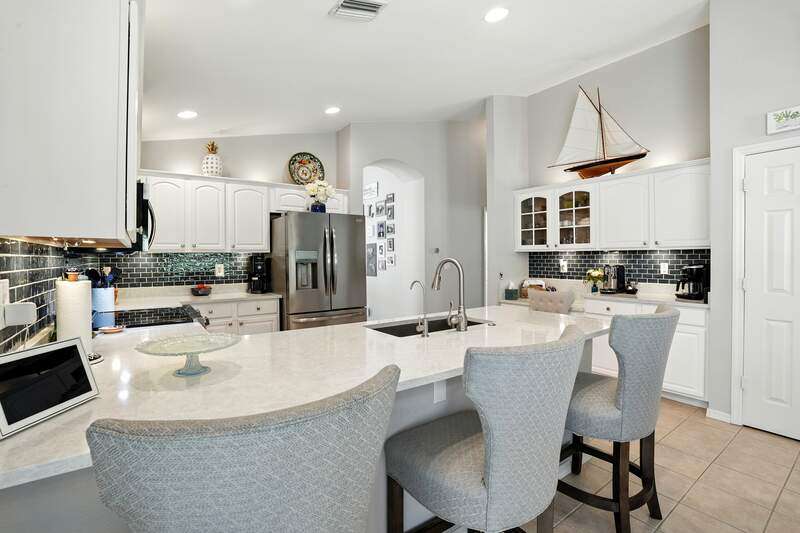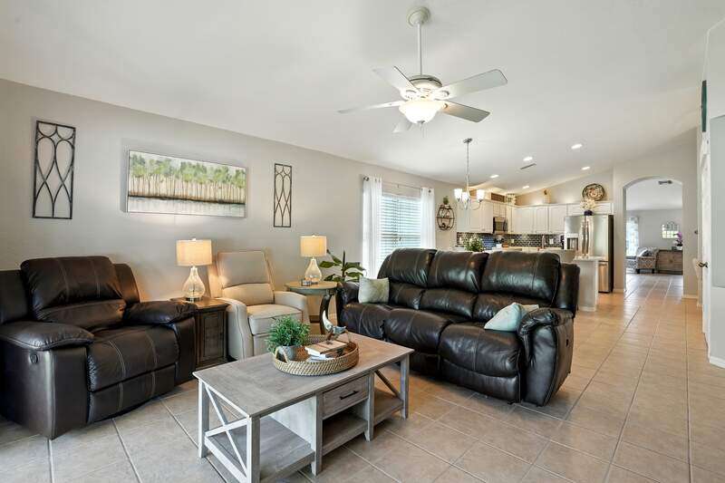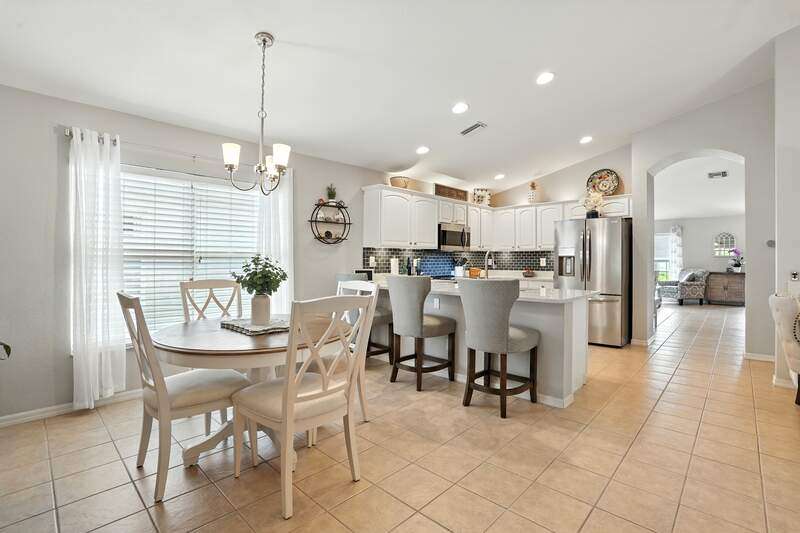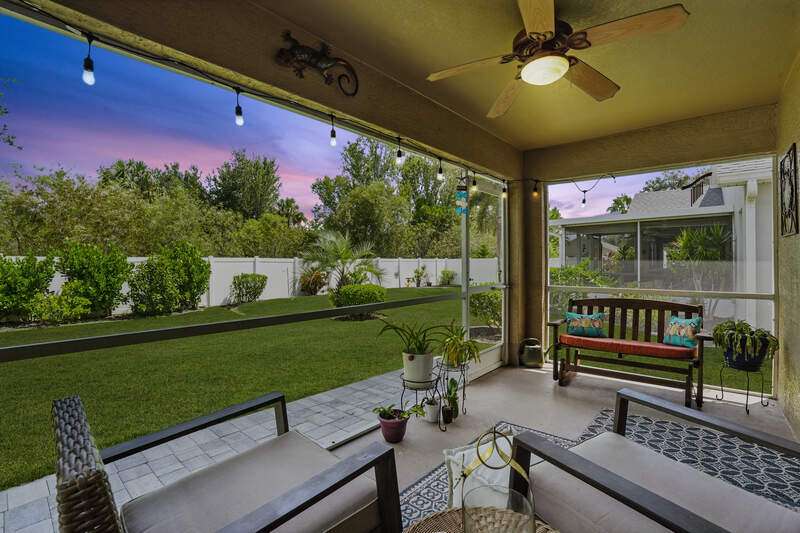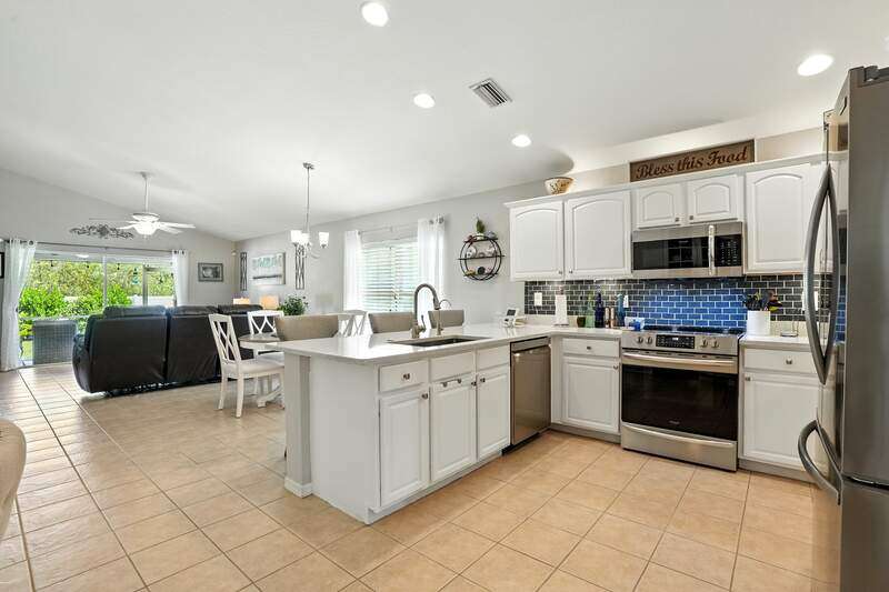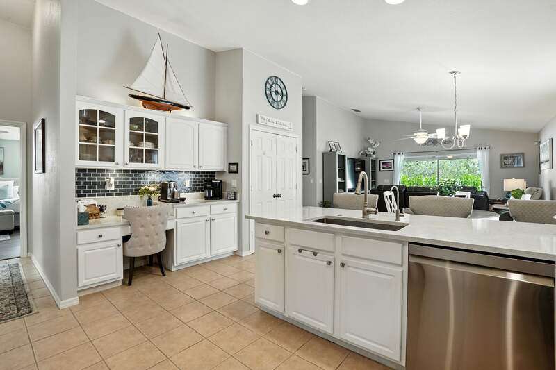 Wake up to serene preserve views in this thoughtfully updated 4-bedroom home nestled on the only secluded loop in the gated community of Gladiolus Preserve. Inside, soaring vaulted ceilings and abundant natural light fill nearly 2,000 sq. ft. of living space with a bright and airy ambiance. Two spacious living and dining areas provide the perfect setting for entertaining or relaxing, while the modern kitchen impresses with updated countertops, a tiled backsplash, breakfast bar, double-door pantry, and a built-in desk. The luxurious primary suite features premium vinyl plank flooring, a generous walk-in closet, and a spa-like ensuite bath with dual vanities, soaking tub, and separate walk-in shower. The versatile 4th bedroom adjoins the primary suite through elegant French doors, enabling it to effortlessly transform into a home office, wellness room, nursery, or cozy sitting area. Move right in and enjoy updated flooring (no carpet), new water heater and A/C compressor (2025), plus a newer roof and kitchen appliances (2022). Your private screened lanai and new paver patio invite you to unwind or entertain while overlooking the spacious backyard and tranquil preserve. Rest easy with low HOA fees, No CDD fees, and No history of flooding! Gladiolus Preserve offers residents a variety of amenities including a clubhouse, heated pool, fitness center, and playground. Ideally located in the heart of South Fort Myers, you'll be just minutes from Sanibel, Fort Myers Beach, Lakes Public Library, and both HealthPark and Golisano Children's Hospitals.