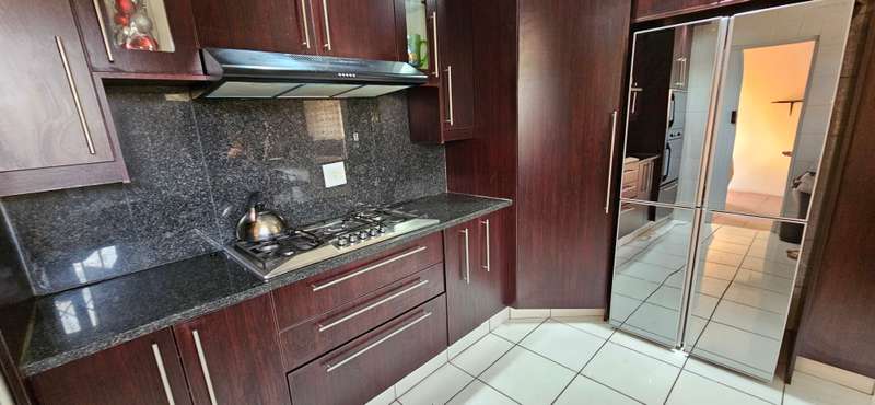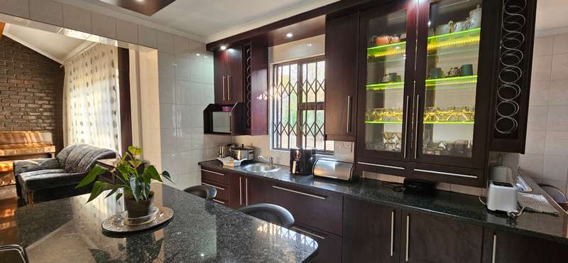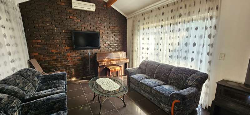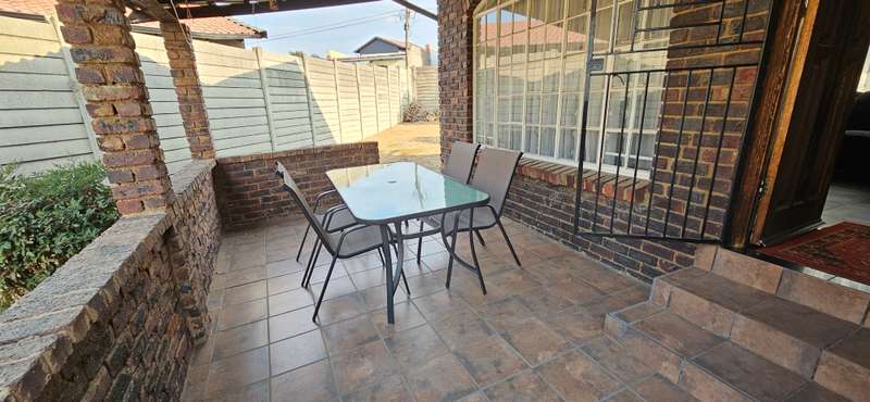 EXCLUSIVE and NEW to the market - This neat home situated within a quiet neighborhood radiates warmth, love and simplicity - The exterior is framed by a small and well maintained garden with 2 beautiful kumquat trees and various shrubs. On the interior, sunlight pours in from the large windows casting a soft glow on on the cozy open plan living room that has a fireplace suitable for wood/coal and an aircon. The kitchen is thoughtfully designed with modern finishes, granite tops, ample cupboard space, gas stove, extractor fan, an eye level oven and space for a double door fridge. The separate laundry room adds convenience and makes laundry day such a breeze. There are 3 bedrooms with with built in cupboards providing a tranquil and serene atmosphere for you and your loved ones, and 2 bathrooms (MES) provide privacy and convenience. The back yard has a small patio and built in braai area perfect for gatherings or just to unwind. There is an added bonus of a storeroom for all your storage needs as well. This property has 2 garages and 2 covered carports, and is well secured with an alarm system and cameras. Situated close to amenities and easy access to main roads as well....