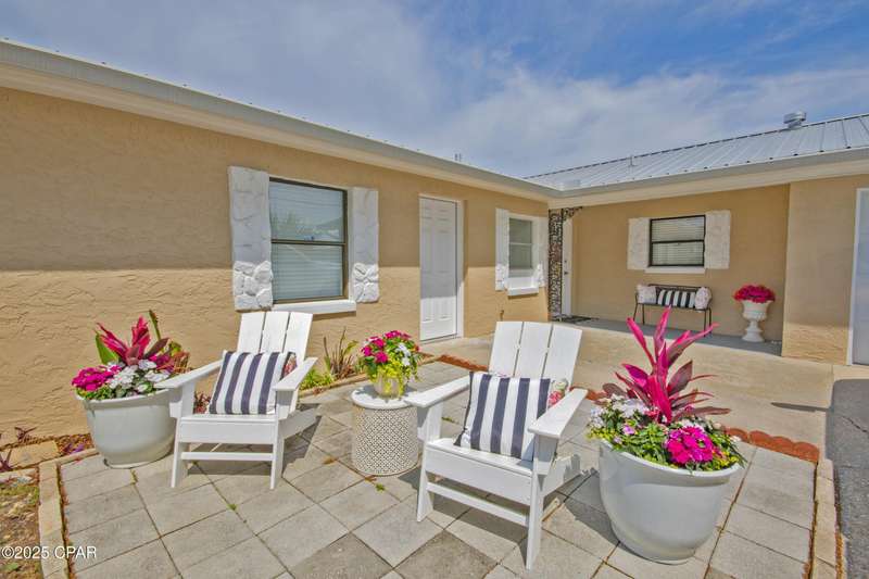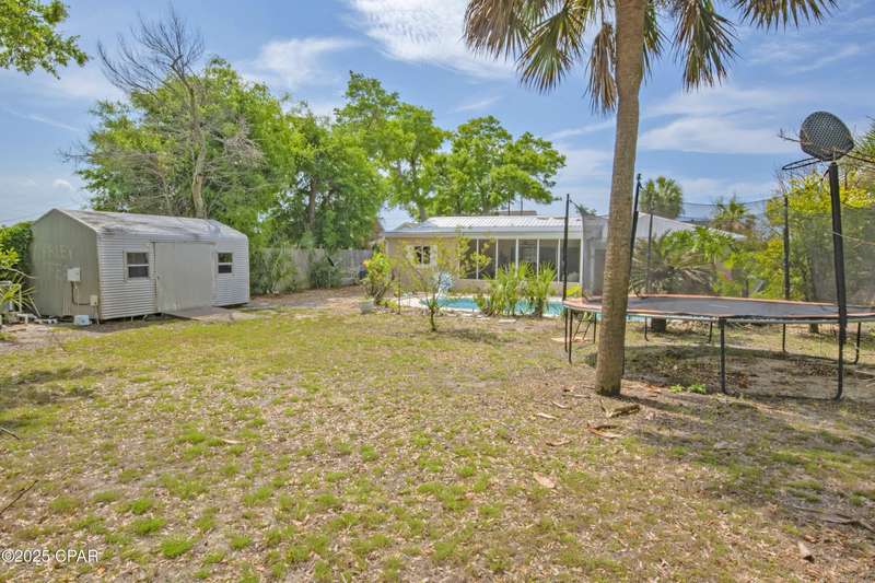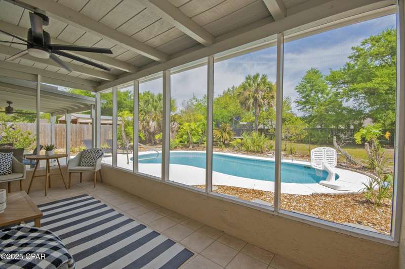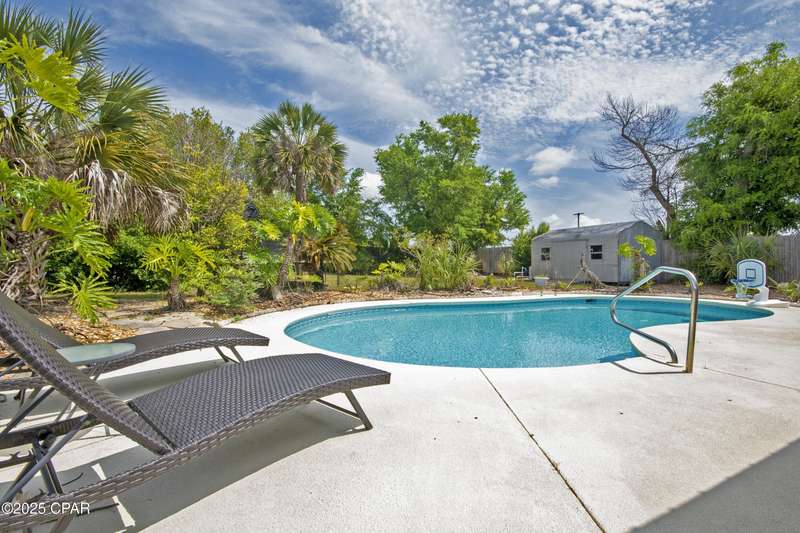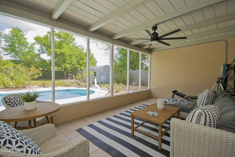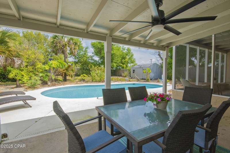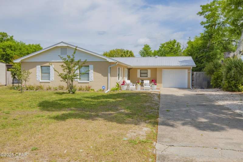 Rare Find! Bayside Estates home with newly converted saltwater pool. Screened in back patio leading to another covered patio both with fans-Florida backyard enjoyment at its finest! Large lot on high point of Estates two streets from Beach Drive. Walk or ride your bike to St. Andrews or Downtown PC. Location is simply unmatched. Come check out this cozy, well maintained 3-bedroom, 2-bathroom home. The primary suite features a private bath with a walk-in shower. Two additional bedrooms are generously sized -- perfect for guests, a home office, or a growing familyThe kitchen offers plenty of cabinet space, sleek countertops, and a spacious dining area that's perfect for family meals or entertaining friends. Outside, you'll love the inground saltwater pool, large, fenced backyard which is ideal for pets, play, or weekend BBQs, plus a storage shed for all your extras.No HOA. Convenient to shopping, parks, schools, and just a short drive to the beaches!Don't miss your chance -- schedule a showing today and fall in love with all this home has to offer!Metal roof 2011, AC/heat pump 2024, water heater 2019 and shallow well pump 2024.
