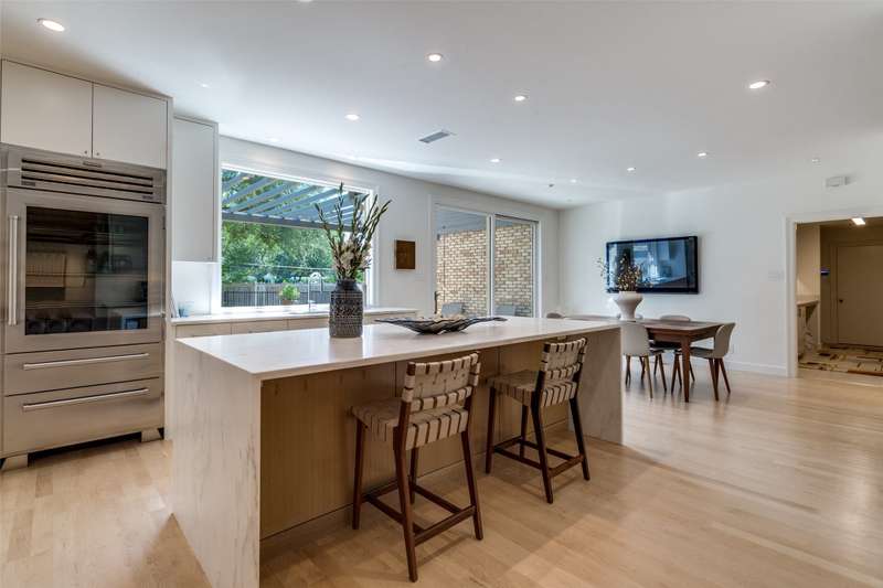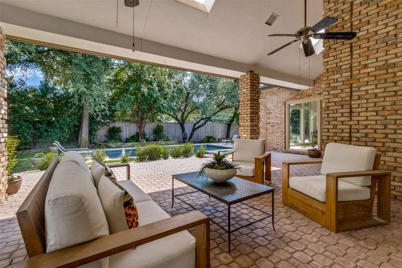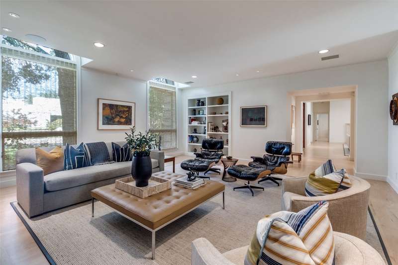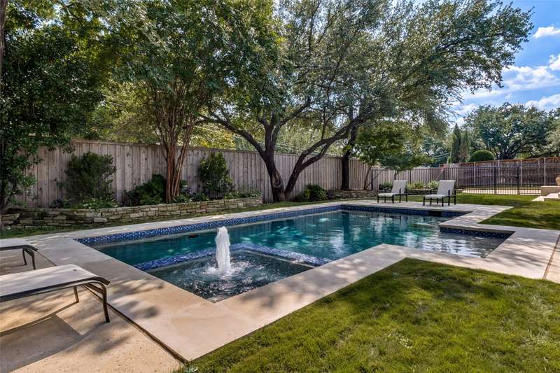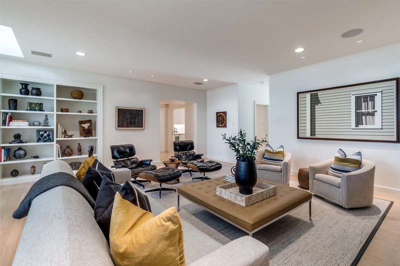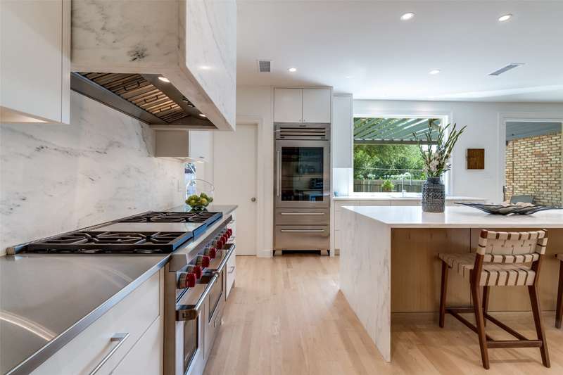 At the end of a quiet street, next to a charming city park sits 5606 Dittmar Place - a home that blends thoughtful design with luxurious living. Extensively remodeled in 2020-2021 (by Architectural Firm: Bernbaum Magadini) the interiors are now open, bright and finished with the highest quality materials. Step inside to a spacious living room with soaring ceilings and a cozy fireplace. The dining room, framed by dramatic floor-to ceiling windows, over looks the beautifully landscaped backyard, complete with a pool, spa and generous grassy areas for play and entertaining. The primary suite is a true retreat, featuring it's own fireplace, private patio, and spa-like bath with Danby Marble vanities, a soaking tub, separate shower, and 2 oversized walk-in closets. A chic powder room is conveniently located nearby for guests. The chef's kitchen has been completely reimagined with a marble-topped island, Subzero glass-door refrigerator & freezer, Wolf 6-burner range, and a bar equipped with a wine cooler and ice maker. Just beyond, a functional office with a full bath and the more casual den with a third fireplace offers versatile main-level living. Upstairs, you'll find a secondary office and lounge, a guest room with ensuite bath, and 2 additional bedrooms sharing a travertine-appointed bath. A flexible exercise or studio space completes the second floor. So much storage and a 3 car garage. Sophisticated, with clean-lines and move-in ready, this home offers an elegant lifestyle in one of the areas most peaceful settings.